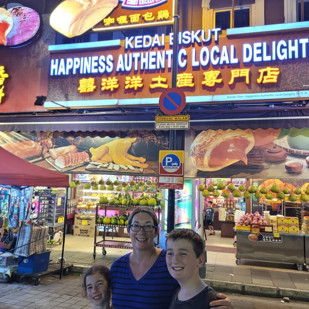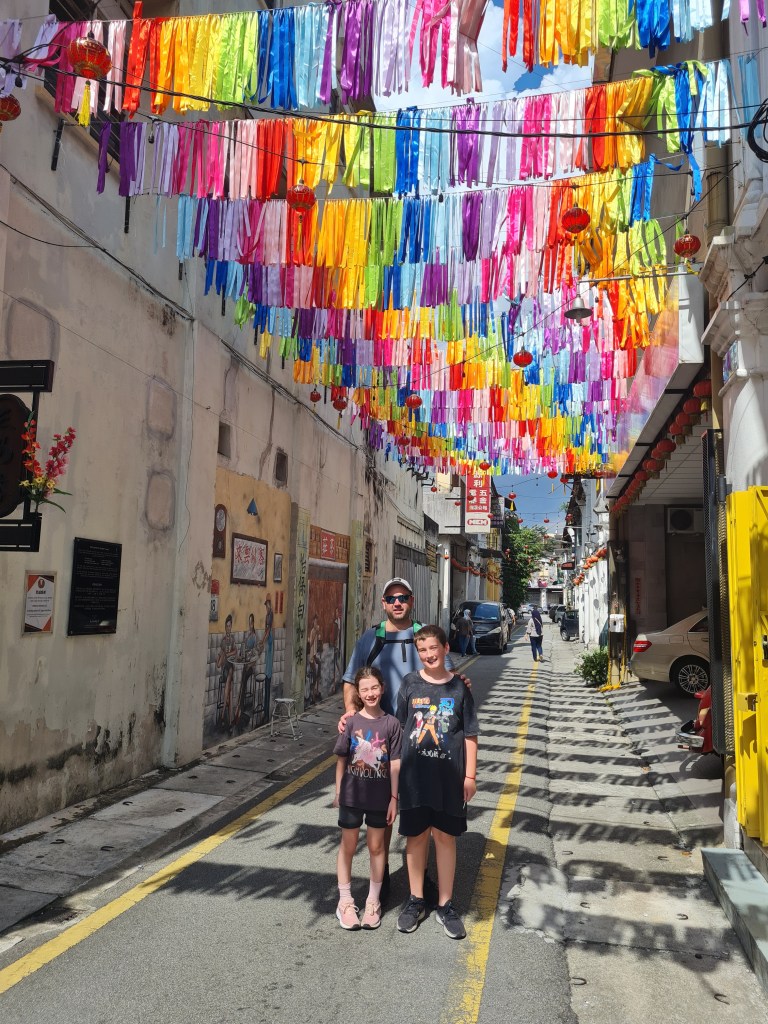 When we booked our Airbnb, we knew it was walking distance to the Old Town, but didn’t realise it was in the heart of Chinatown. On our first evening here, we enjoyed a delicious meal of beansprout chicken and rice (a local specialty) from a nearby hawker restaurant. The kids really enjoyed it…the chicken was so tasty, tender and flavorsome. Afterwards, we wandered through the main street market, exploring the street stalls selling various knock-offs of anything from bags to jeans to sneakers to hats.