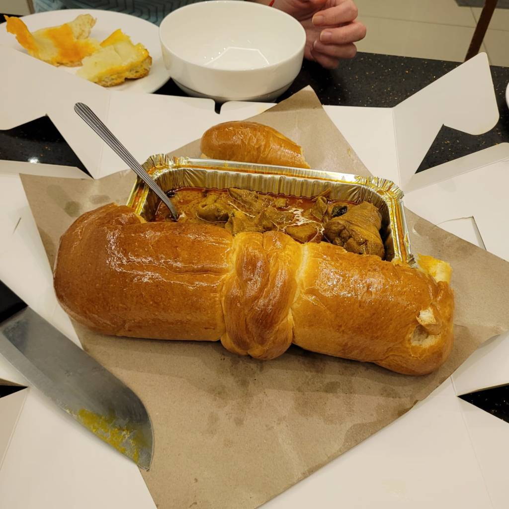 In the shop behind us, we stumbled upon chicken curry inside a bun that looked very appetizing. We had this dish on our second evening in Ipoh and it was delicious! In hindsight, we should’ve bought two of them because the kids ate most of the bread, but lucky we always keep 2 minute noodles on hand for food emergencies.