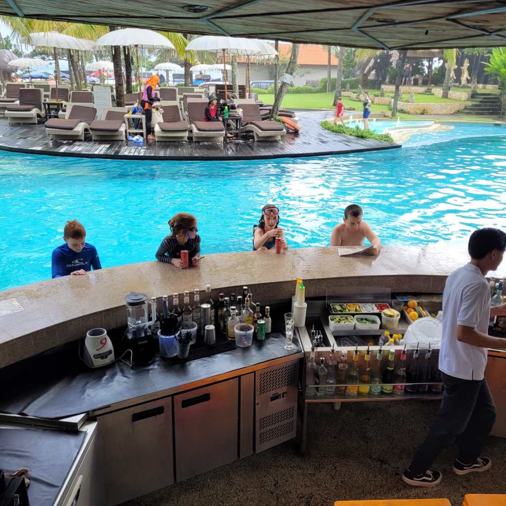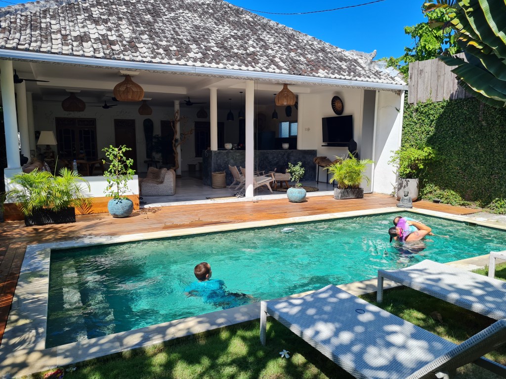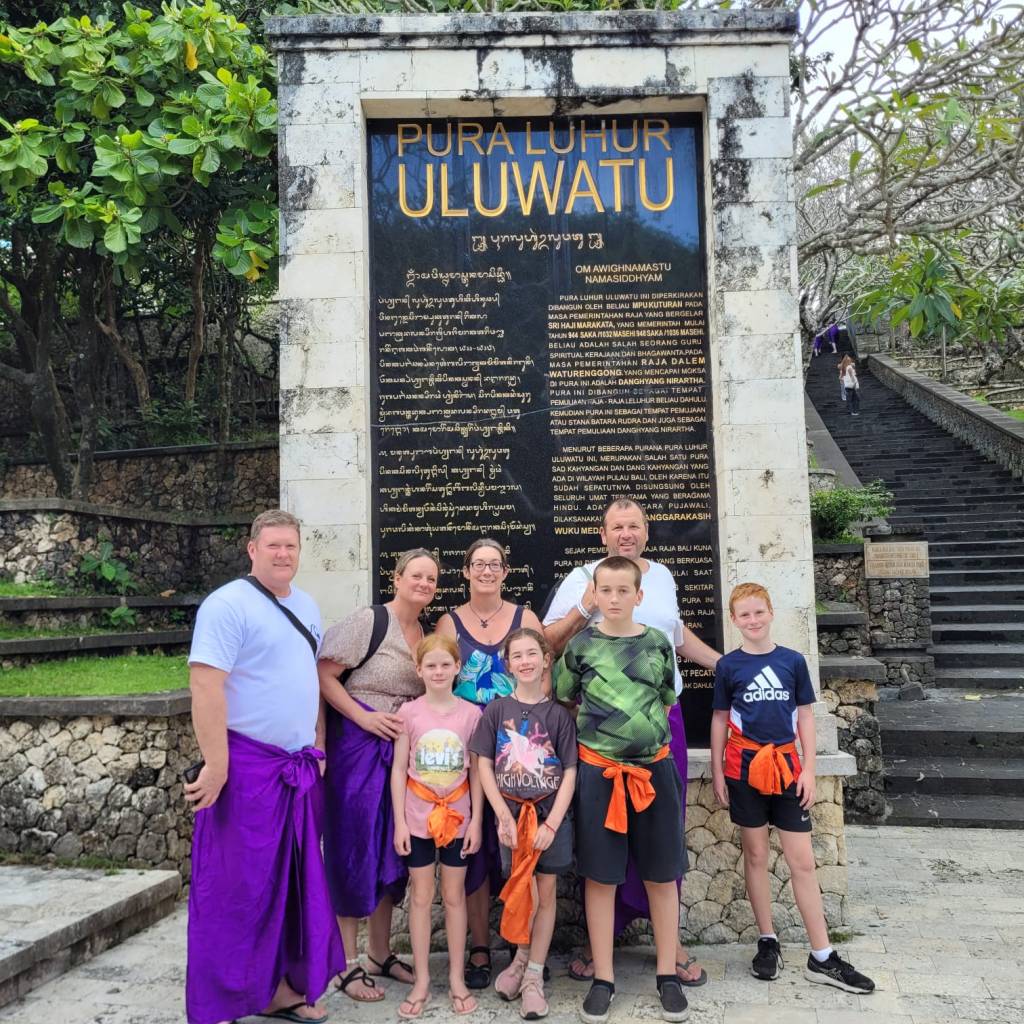 We had the best time over the next few days, enjoying the swimming pool, eating out together, exploring the local area, getting massages, and having a great time catching up on each other’s lives. Our children were especially stoked to have Jemma and Benjamin to hang out with. After 3 nights there, we moved to an Airbnb villa nearby, and after one more night in the Mandira, James, Jodie, and their kids moved to another resort. We continued to hang out together for the next 7 days, and Jodie was an amazing tour organiser, including an incredible family day out at Waterbom Park, a trip to Uluwatu and a farewell dinner at Frankenstein’s.
