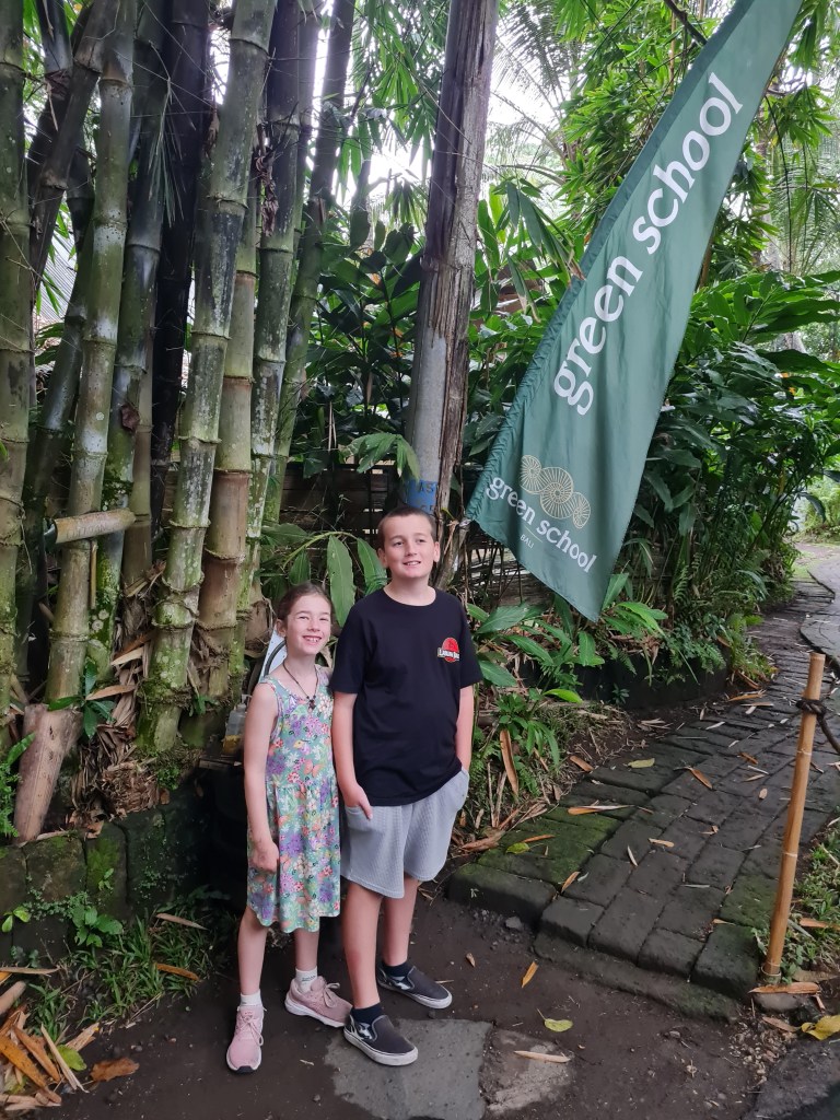 On our last full day in Bali, I took Leo and Anna to visit the Green School in Bali for a tour that I had booked a few weeks earlier, after my friend Emma reminded me about it.