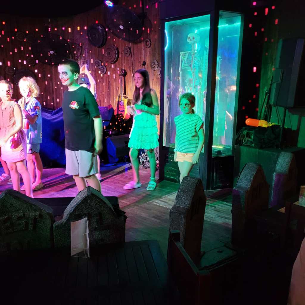 The first performance was based on Disney villains, and the second one had the theme of Ghostbusters. In between these two acts, the characters did karaoke with the children, which was very popular.