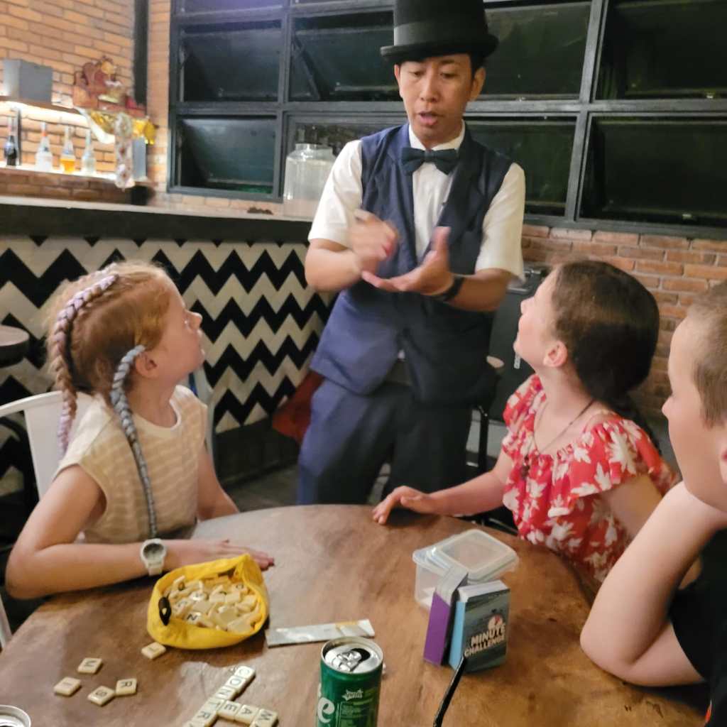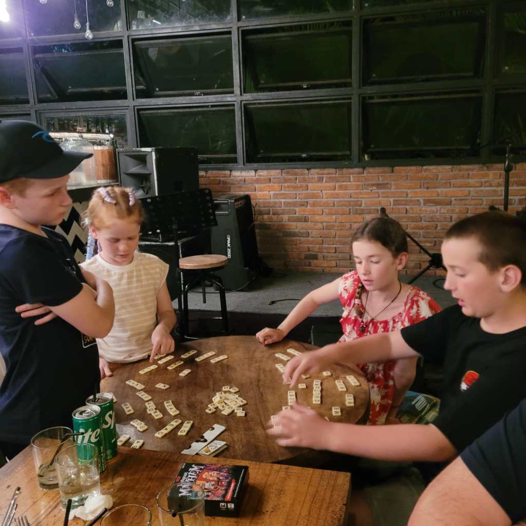 The kids enjoyed playing the games we had brought with us, and we found that Banangrams was a particularly popular one and helped entertain the kids when we were out for dinner as well.