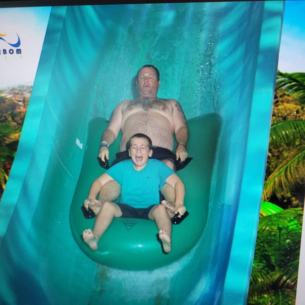 Another slide with pretty lights when you turn around and then there is A MASSIVE DROP AND THEY TAKE YOUR PHOTO THEN YOU GO UP A WALL AND FLY BACKWARDS AT THE SAME TIME OF SCREAMING YOUR HEAD OFF YYYYYYYEEEEEEEAAAAAAAAHHHHH!!!!!!!!!!! Ok it is safe to say this is the best slide especially since I went on it with my 120kg (about half the weight of a large motorcycle) dad who also got a fat wristband at the park.