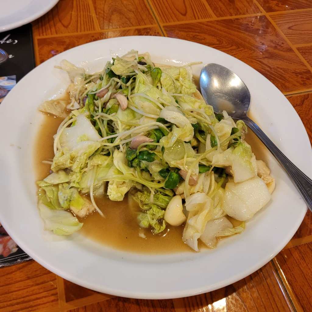 Honestly, Bangkok has spoilt us for streetfood, with it’s huge range of options and incredible value for money. For dinner, we went down the road to a vendor out the front of the 7/11 who was selling roast pork, dumplings and greens in a clear soup.