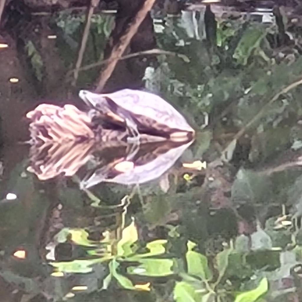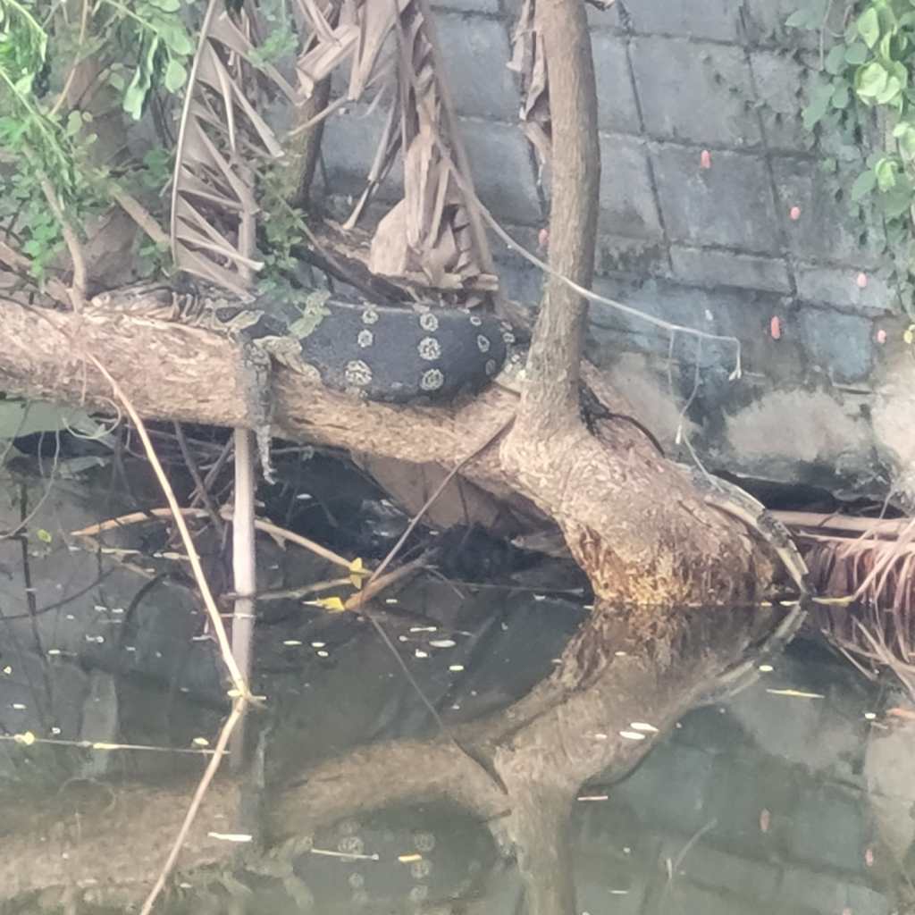 On their way to dinner, they spotted a turtle and a monitor lizard in the grubby looking pond next to our hotel.