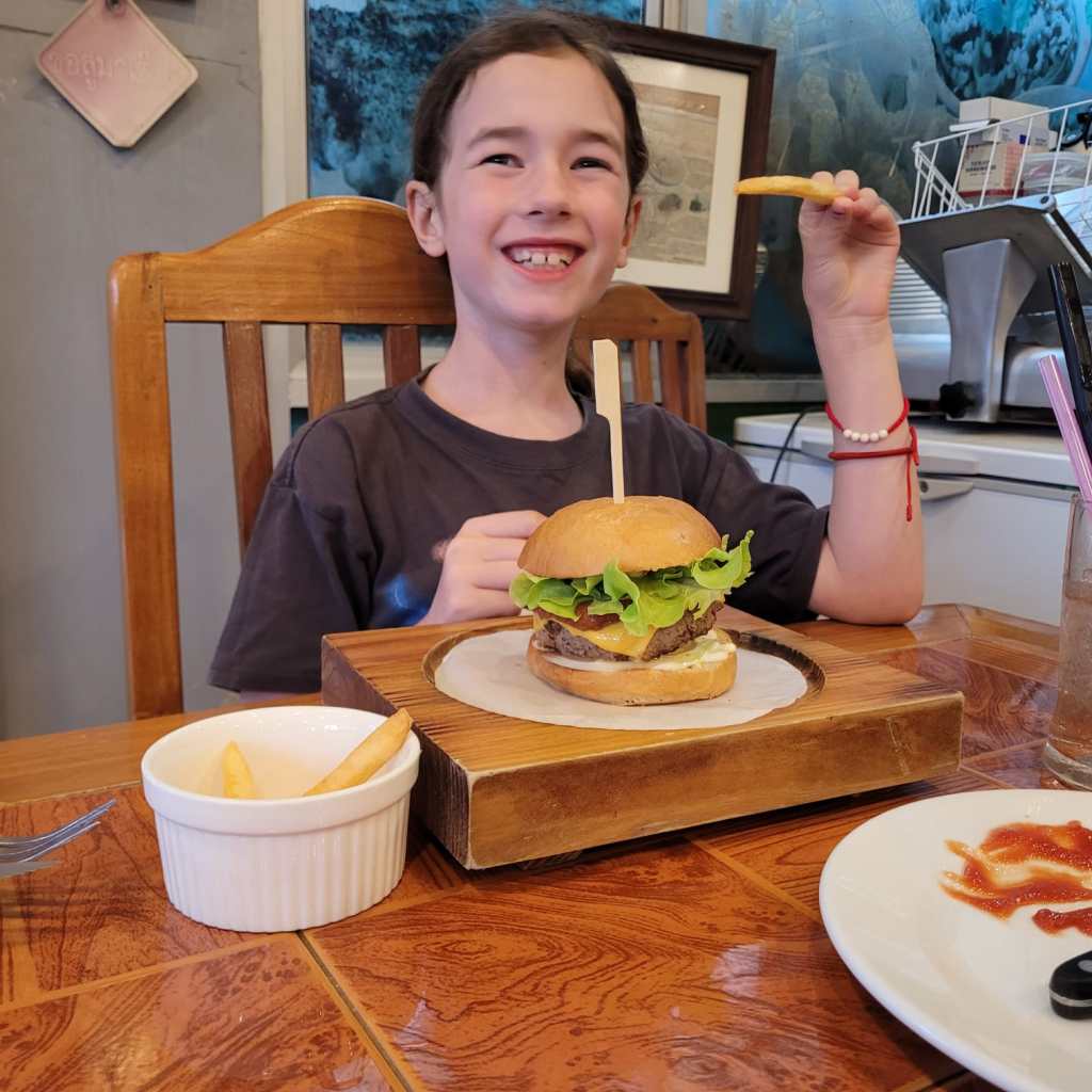 That evening, Shaun took the kids out for burgers around the corner, and he got a lovely Thai dish. Leo was fully recovered and demolished his burger with gusto!