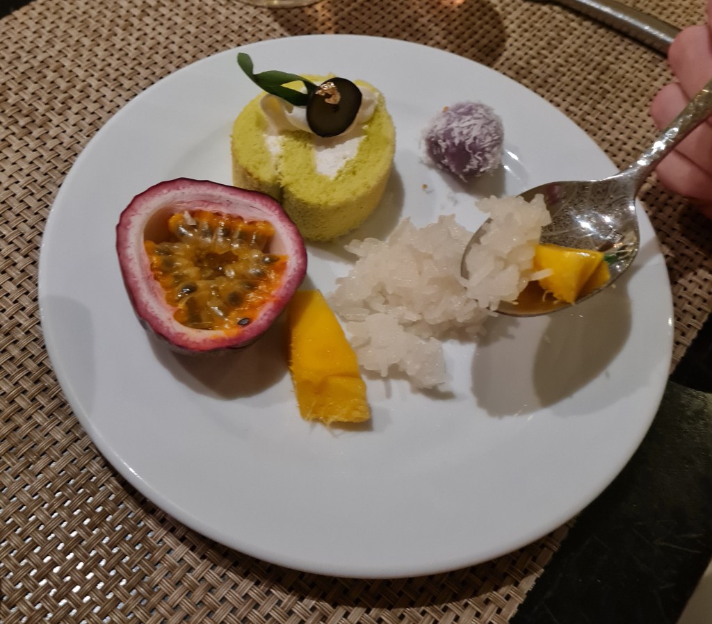 Meanwhile the kids and I joined Clare, Barb, Emmy, and Tim for dinner at Baan Talay Thai Restaurant, which is part of the Angsana Hotel in Laguna. The Thai buffet was amazing, and the desserts were exquisitely presented with beautiful details, including gold leaf. I made sure I had a taste of the delicious mango sticky rice, one of my favourite desserts in Thailand.