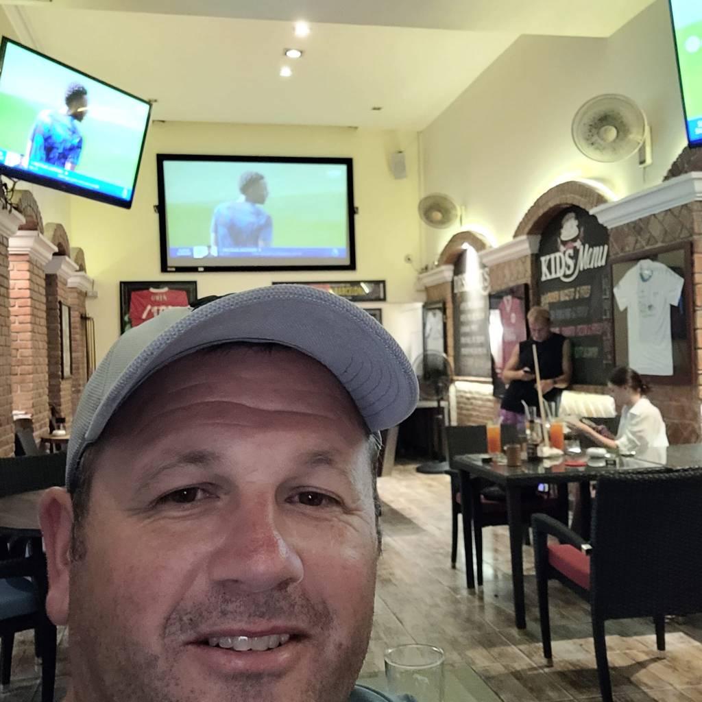 Initially he met a friendly Irish guy at the bar, who was very chatty, but it soon became apparent that he was after more than just a friendly chat, so Shaun excused himself. After attempting to make conversation with the rather grumpy and slightly hostile expat English owner and his mate, he gave up and ended up watching the game alone. At least he had his friends in England for company, who he was able to message throughout the game.