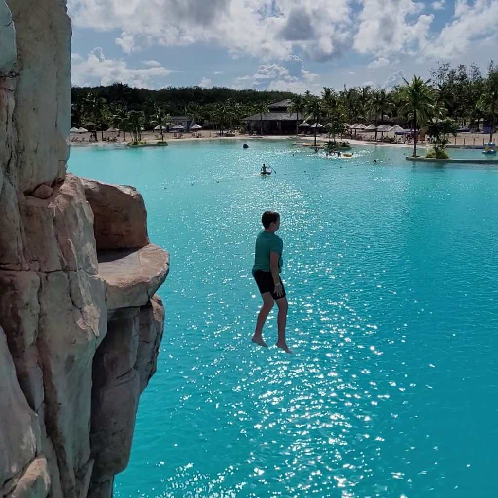 The cliff jumping was great and really cool. The water just got up my nose and hit my arms. But the photos were great and the videos. My dad said it was the same as the wharf, but it was definitely higher.