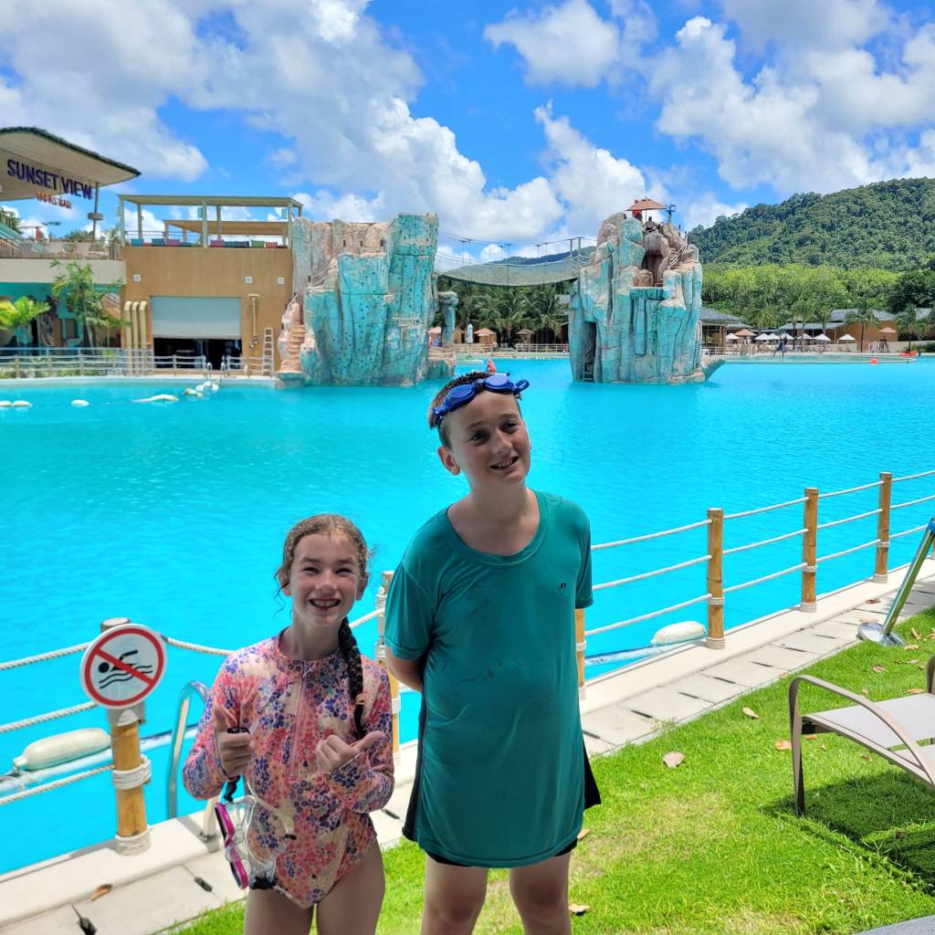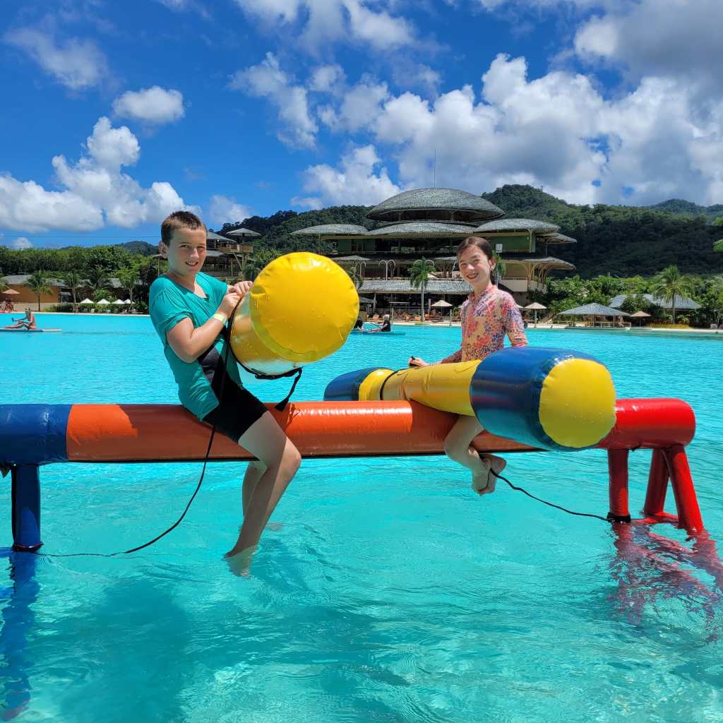 The following day, Shaun and I decided to take the kids to Bluetree Phuket, which Clare and her kids had recommended. It is a resort, but it has an enormous lagoon pool with waterslides, and a huge range of outdoor activities, both in and out of the pool.