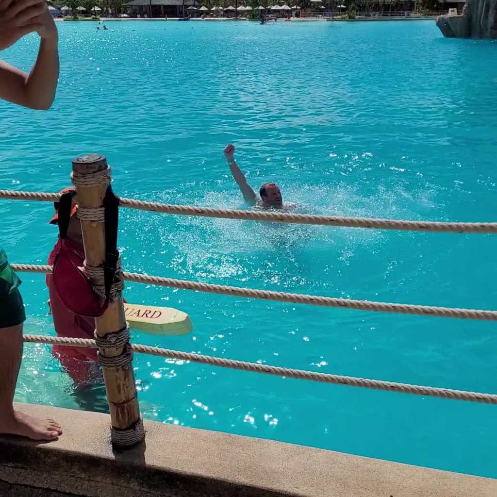 The above action shot was the first of three launches from this slide. It ended in an unceremonious landing, which was hard to watch! The second two attempts were much better. Shaun adopted the head-first technique and subsequently orchestrated better landings. He loved winding back the years and testing himself at this waterpark, but I didn’t love the complaints of aches and pains that followed in the days after!