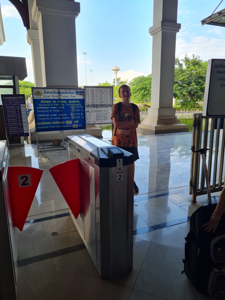 The Lao-Thai Friendship Bridge IV is situated just outside of Chiang Khong. The bus driver dropped the four of us off at the turn-off, where a waiting tuktuk took us the rest of the way. As we were disembarking the bus, a young couple of European backpackers said “Get the bus! Don’t get the boat! We’ve heard that the boat is awful.” We thanked them for the advice and double checked ourselves…were we mad for thinking we could manage the two day slow boat journey with two kids? Was it really that bad?