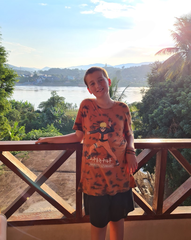 The rest of the journey passed by quite quickly, and the scenery got even more beautiful as we got closer to Luang Prabang. We played a few of the games we had brought with us, like Rummikub and Yahtzee, read our books, listened to music, watched tv shows we had downloaded, and Leo had his Switch, once he’d finished his schoolwork of course.