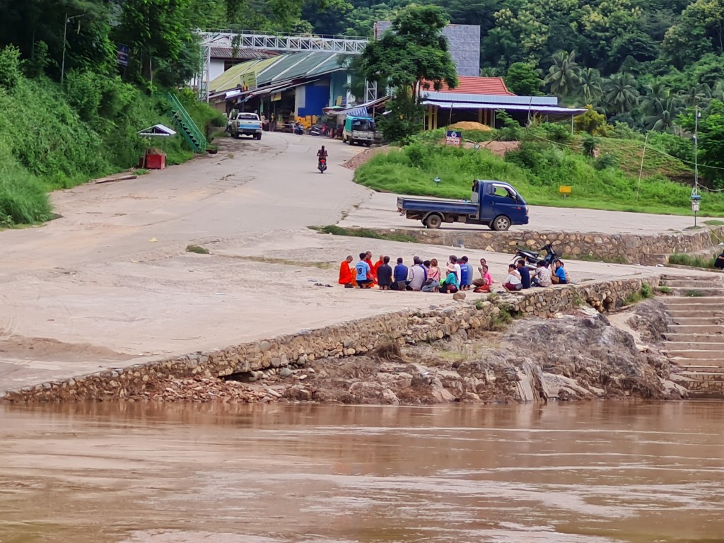 As we were pulling away, there was a group of people doing morning prayers with three monks on the riverside.