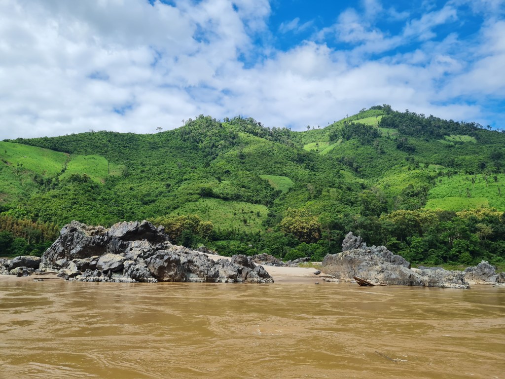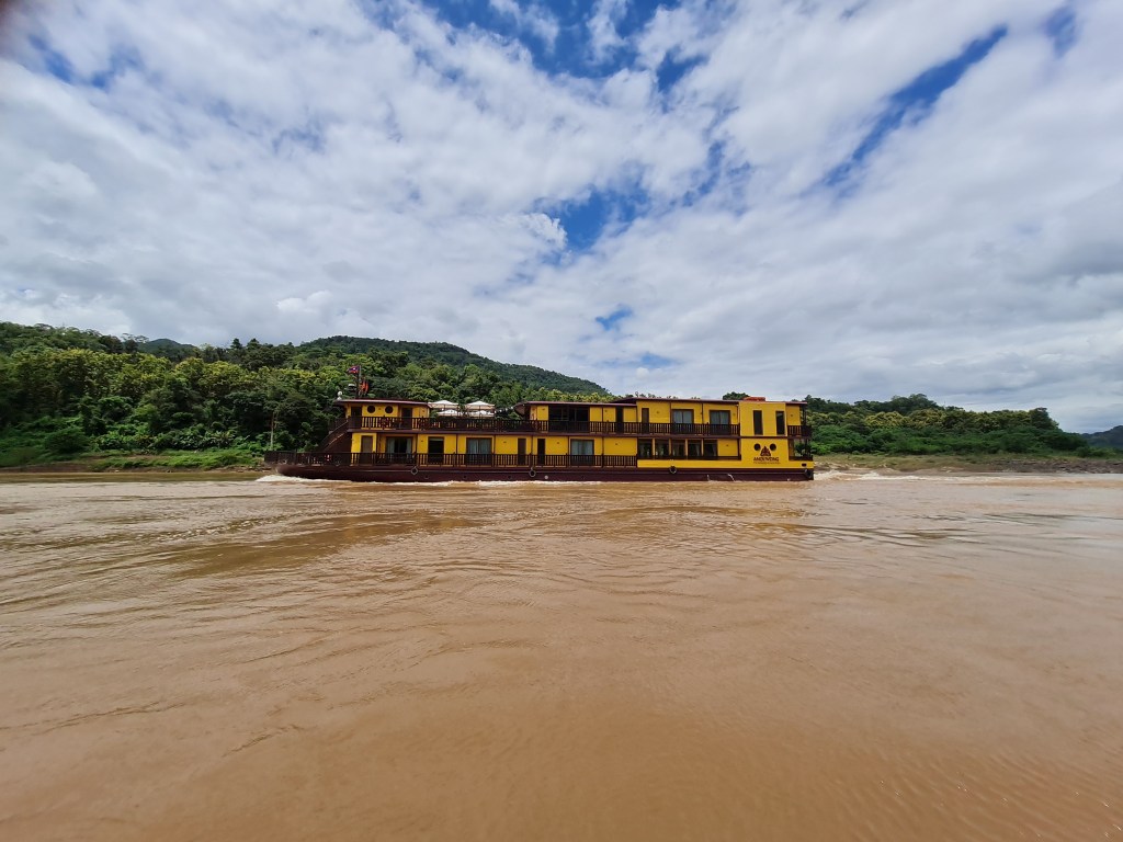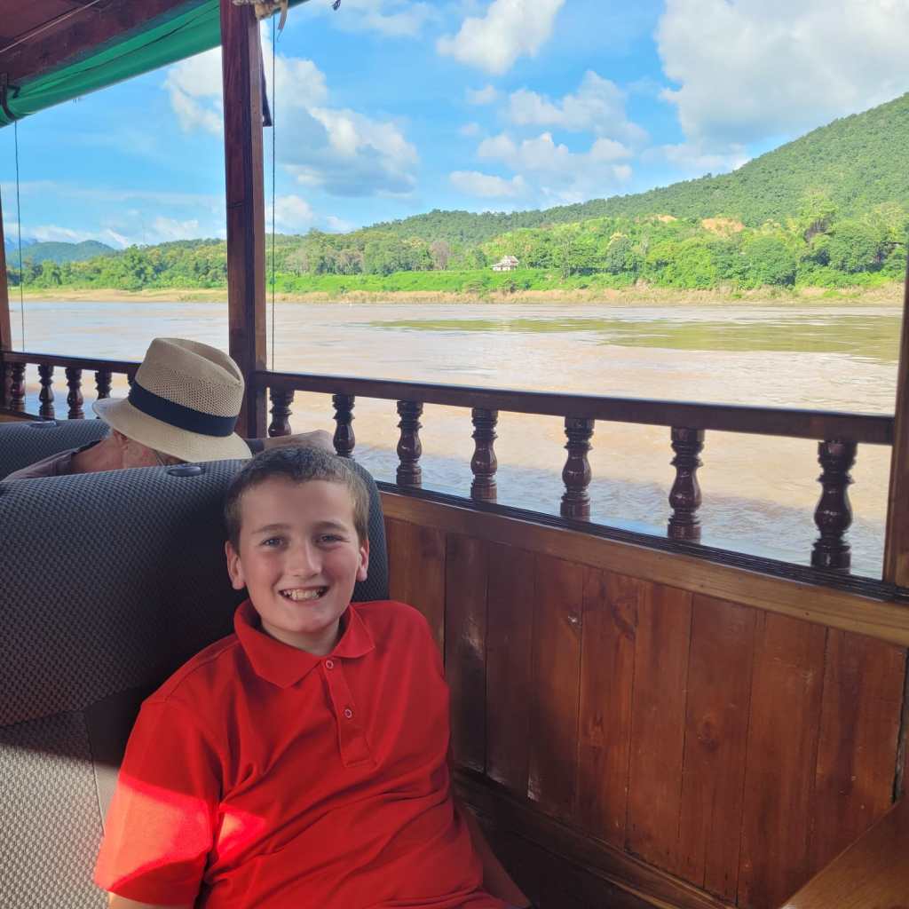 It was also fascinating watching the river itself, which is full of varying currents and eddies. At this time of year, in early September, the Mekong is full from rainy season downpours, and while the current was swift, it had what I can only describe as a languid quality to it, as its flow seemed effortless and eternal. We had watched Sue Perkins’ documentary on the Mekong on Netflix a few months earlier, and I really got what she meant about how the Mekong is the lifeblood of the six countries if flows through…it just has that feeling…and it became our constant, familiar companion throughout our journey.