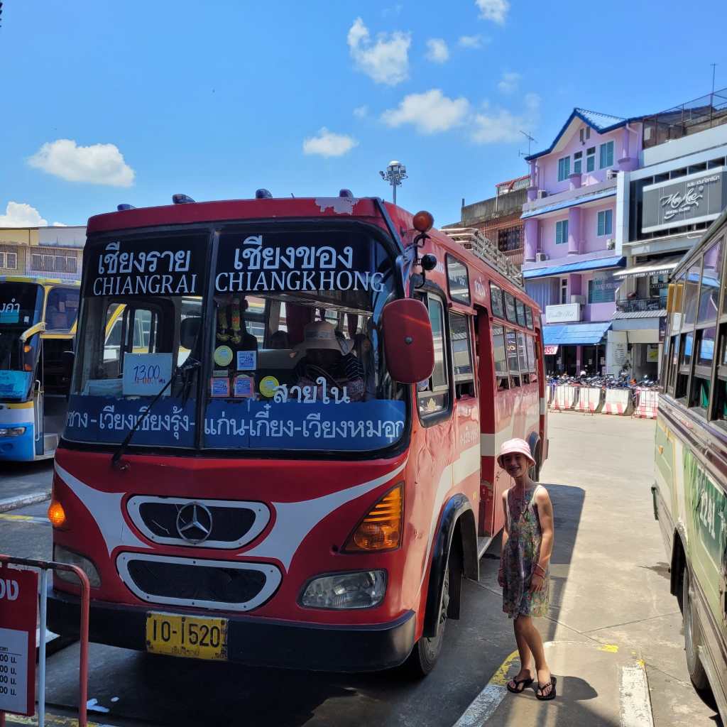 While eating our toasties at the bus station, we were approached by a taxi driver wanting to transport us to the border for a pretty sum, however, with the 1pm local bus costing only 70 baht each, we stuck with the bus, even though it looked a little rustic.