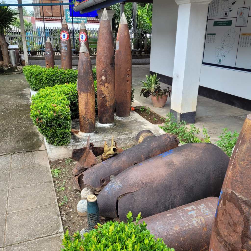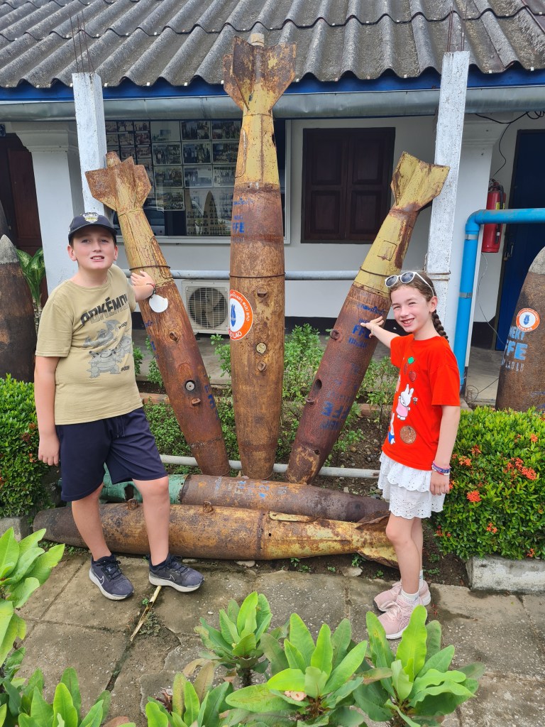 We then headed out to the UXO museum, which we decided to take the kids to after Leo had learnt that Laos has the unfortunate title of being the most bombed country ever. In numbers, this equates to being bombed every 8 minutes, 24 hours a day, for 9 years by the United States in an undeclared, secret war, leaving a legacy of vast amounts of unexploded ordinance, known as UXO.