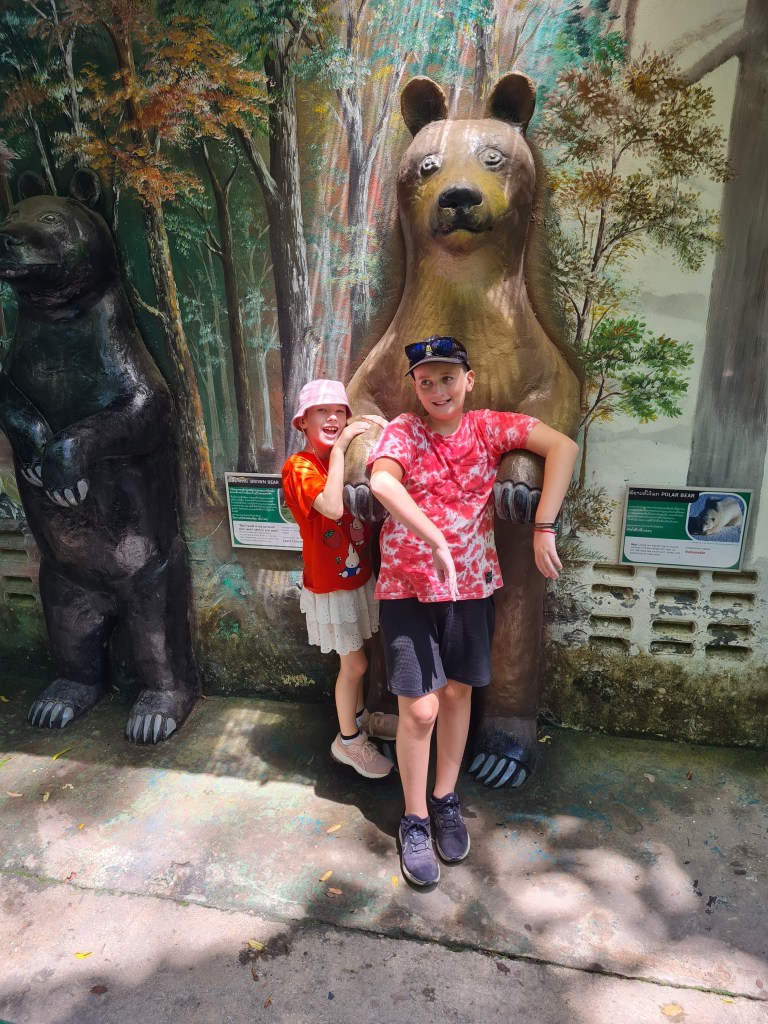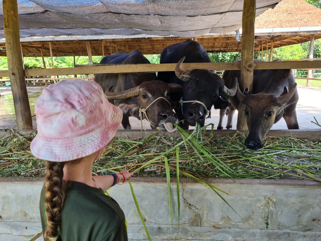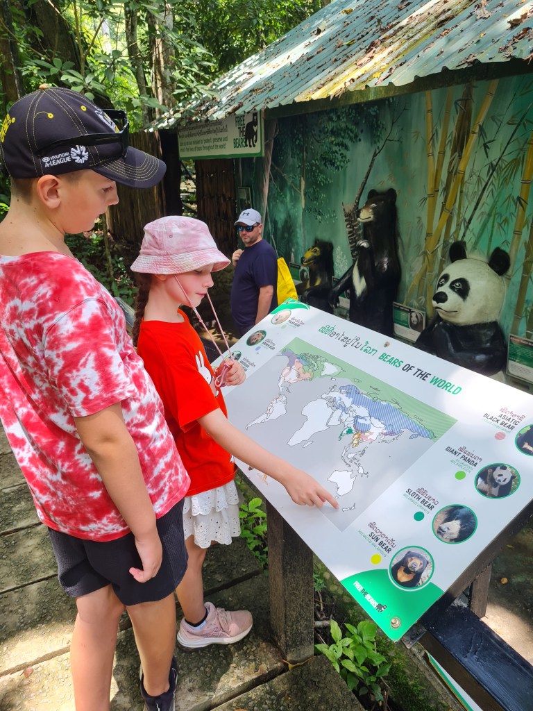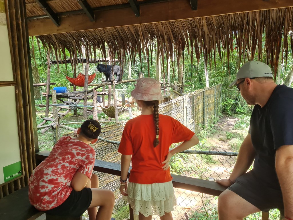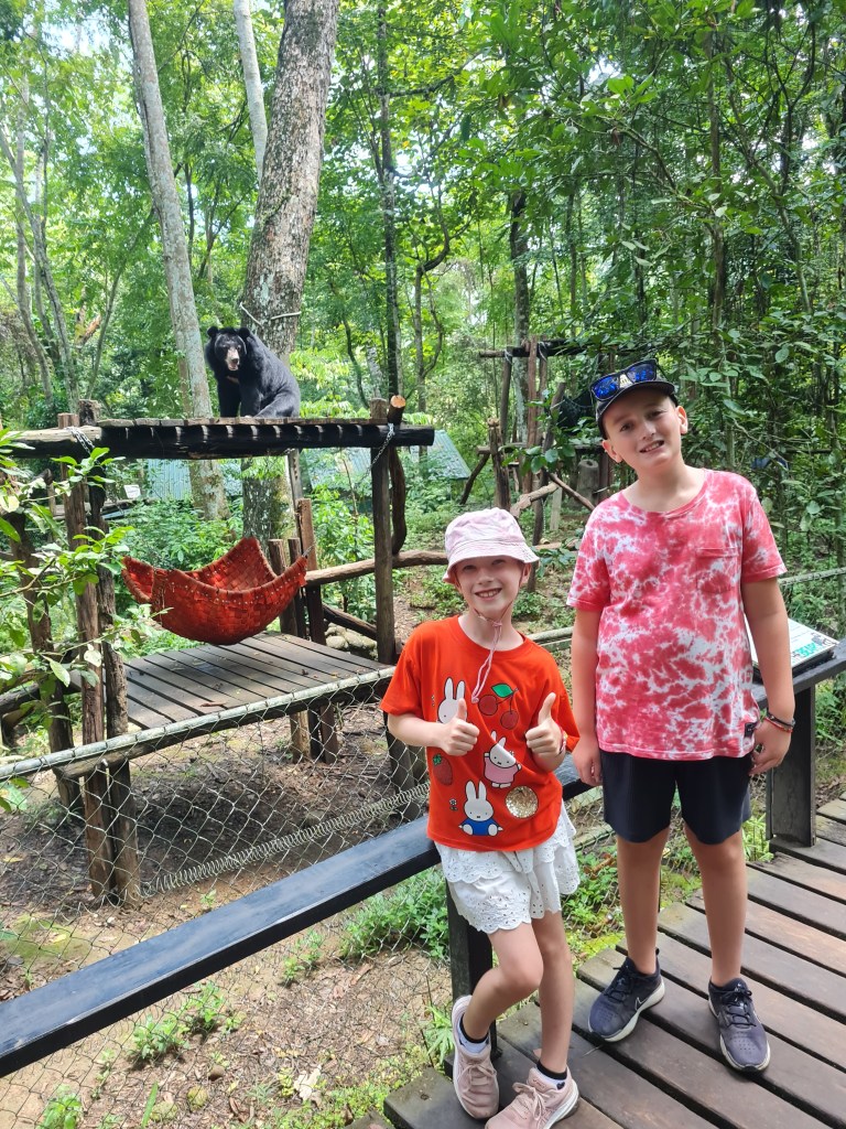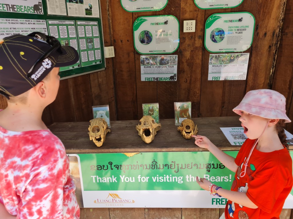 The kids were quite taken with these gorgeous moon bears, who seemed very content in these surroundings. Even if they weren’t completely ‘free’, they looked happy, healthy, and well cared for. One of the biggest challenges facing rescued creatures is that they can’t just be released back into the wild because they lack the defences and experience needed for survival after years in captivity. Additionally, the forests are not safe for them because, unfortunately, the illegal wildlife trade is still thriving in Laos.