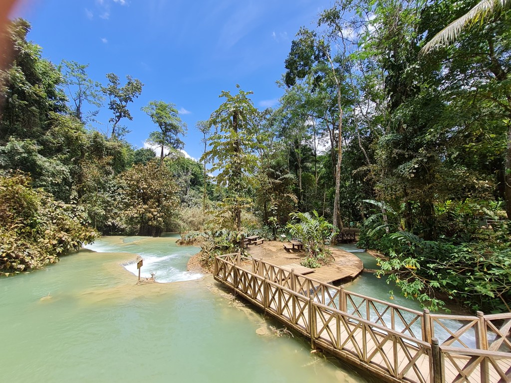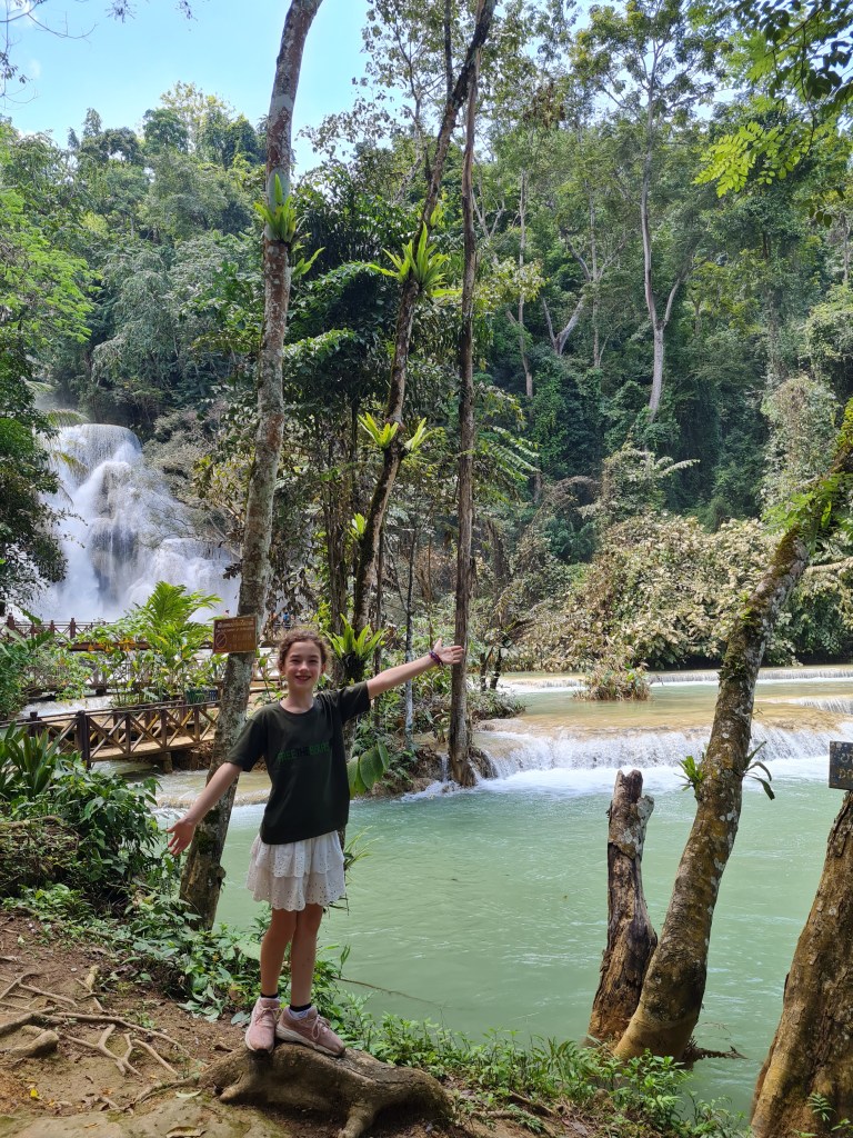 A little bit further on, we came to the bottom pool of the famous Kuang Si Waterfall. The water was a beautiful, milky turquoise colour thanks to the limestone rock it travels over. It really was quite spectacular.