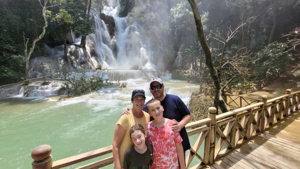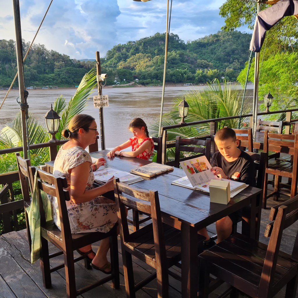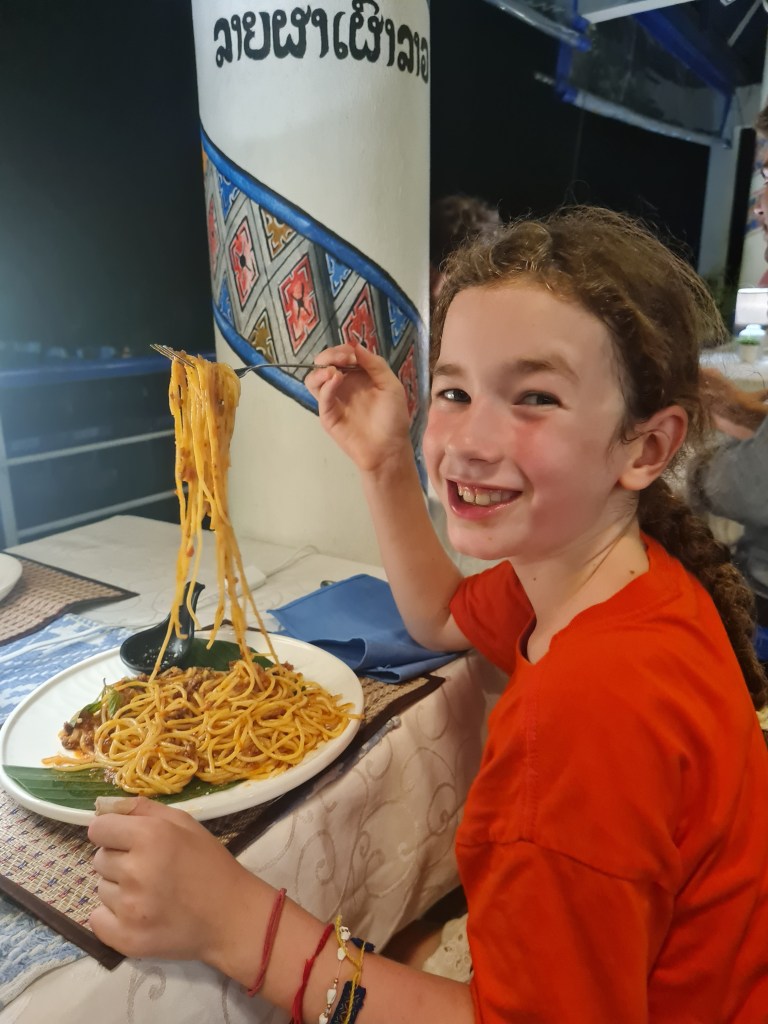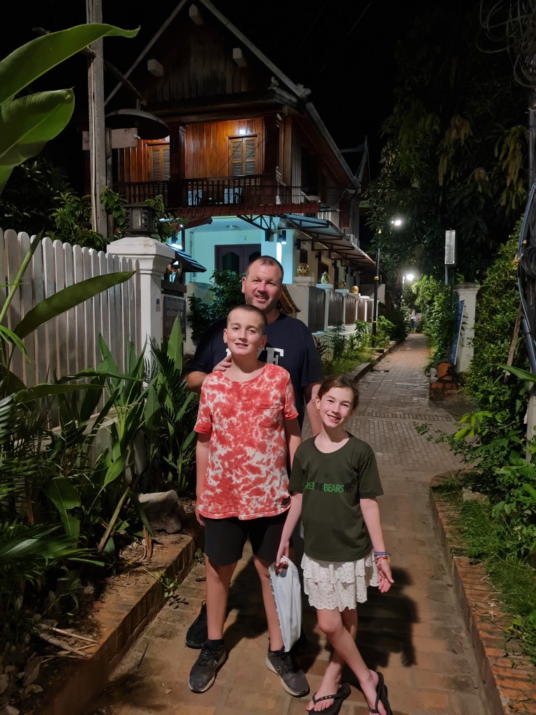 After a bumpy 10 minute tuktuk ride into the city centre, we arrived at Villa Pumalin, the guesthouse where we had booked in for six nights. We always try and give the kids a settled period after a few days of back to back travel, and we were so glad we had chosen to do this in Luang Prabang. Over the following week, this charming little city would nourish our bodies with fresh, tasty food, delight our senses with its architecture, temples and stunning natural beauty, and steal our hearts with its vibrant, soulful character and laid-back, friendly people.