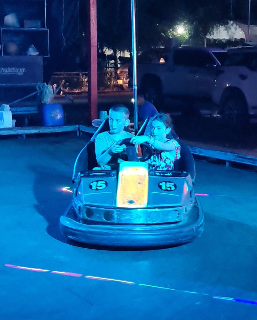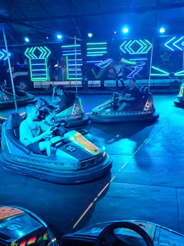 As expected, the dodgems didn’t work perfectly, and at one point, Leo and Anna’s one developed a mind of its own, remaining in reverse, tearing backwards and ramming them against the side barrier. They both had sore necks the next day, and I think it’s probably the most dangerous thing they’ve done on our entire trip.