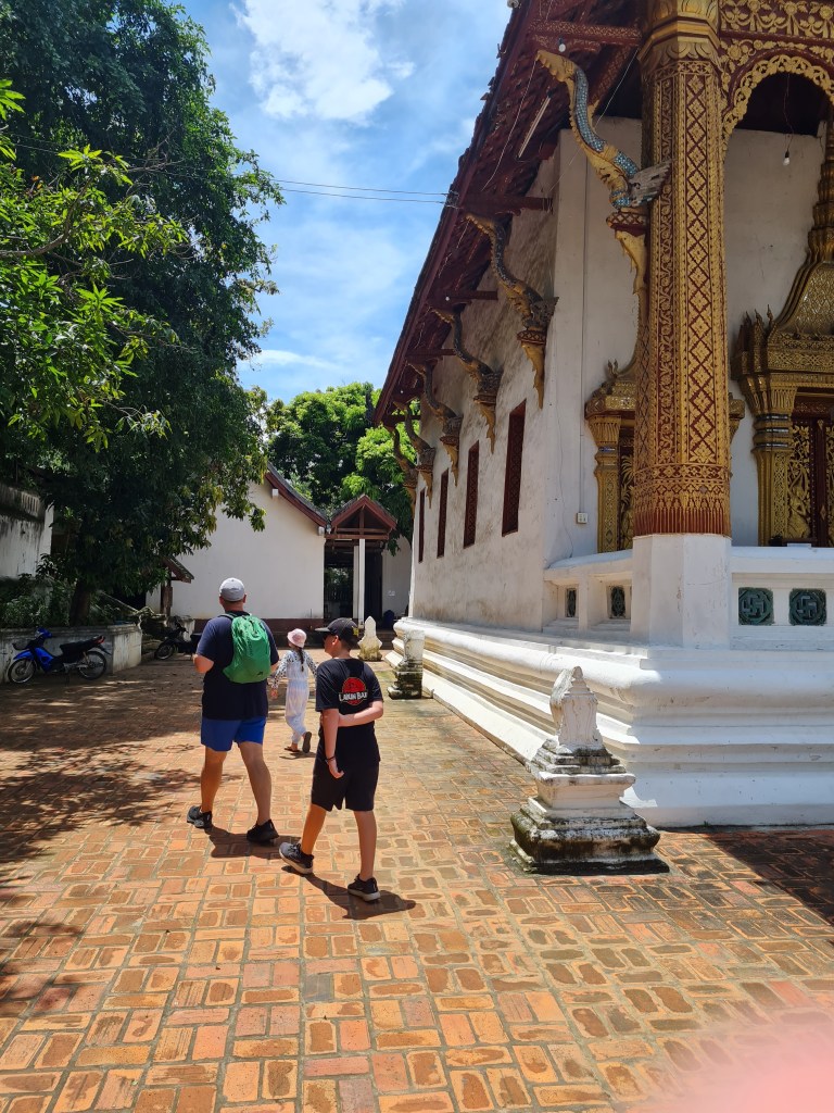 Feeling refreshed, we carried on walking along the Nam Khan River, past the famous temples where the ancient daily tradition of alms giving takes place at 5.30am each day. The local people sit outside their houses with sticky rice, offering it to the monks who walk past each morning, as the monks depend on the community for sustenance. As much as I would’ve loved to have seen this, it has become a huge tourist attraction in LPB to the point where it is becoming intrusive, with tourists being pushy and getting in monks’ faces to take photos, rather than standing and observing from a respectful distance. I grappled with this decision of “to watch or not” for the duration of our stay but ultimately decided that I didn’t need to watch it just because I was there. It was enough to know it takes place there each day to get a sense of the city’s spirituality.