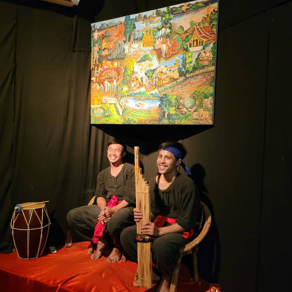 He is accompanied by a musician playing a khaen, which is a traditional Lao bamboo flute, and it sounds beautiful. Between each story, and at certain parts within the stories, we were treated to this music.