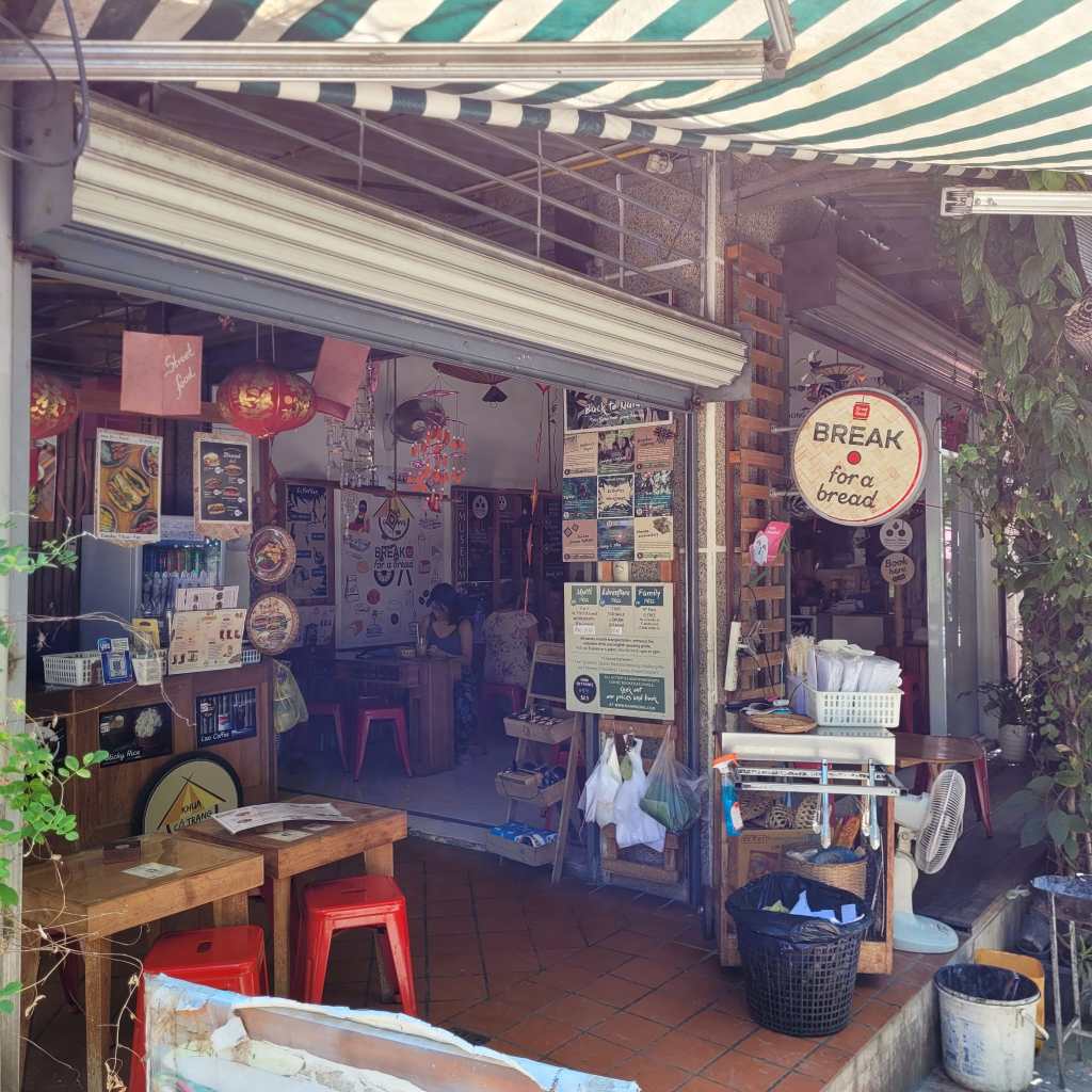 After our sobering visit, we walked through town to a little place I had found online called Break For A Bread. From my research it ticked a lot of boxes to keep the family happy: cold soda drinks, filled baguettes, bun cha, satay and pork skewers and homemade chicken nuggets, all for exceptionally reasonable local prices, rather than tourist prices.