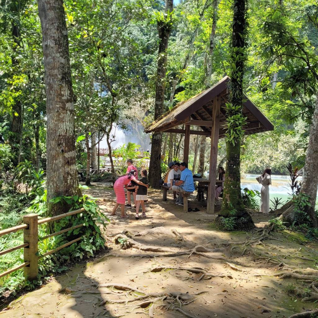 On our way, we passed the adjacent Butterfly Park, but alas, it was closed on Thursdays. After a few minutes’ drive, we’d reached the top, where we passed lots of local food stalls and showed our tickets for entry to the waterfall trail. It was a welcome relief to enter the cool rainforest, which provided respite from the heat of the sun. Walking around in this part of Laos for any length of time almost always resulted in a sweatbath, no matter how light the layers of clothing…it was so HOT!