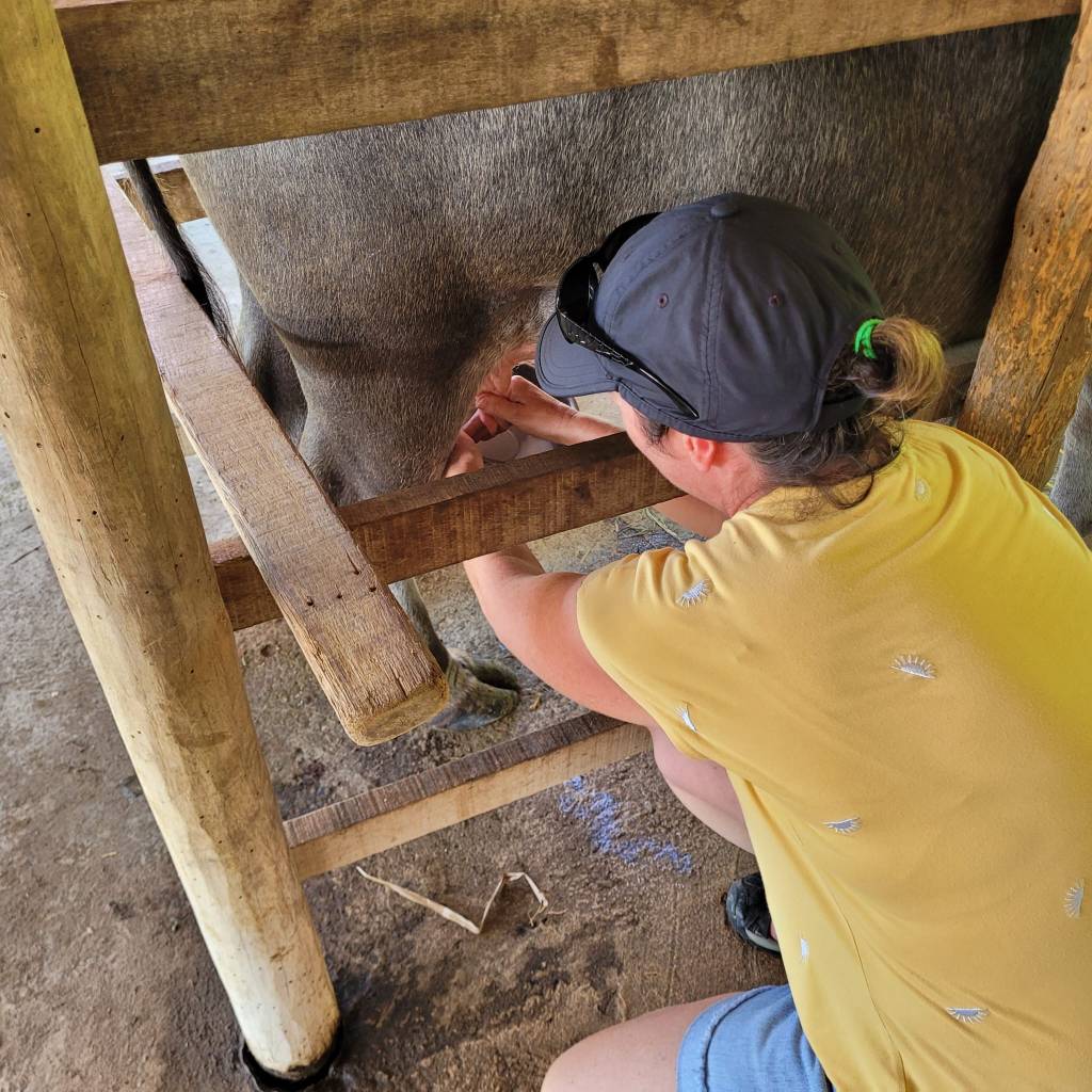 After that, we went to the buffalo farm, and we got to milk the buffalo. A buffalo produces less milk than a cow that is 7-9% fat. It is more premium and worth a lot more because cow milk is only 2-4% fat.