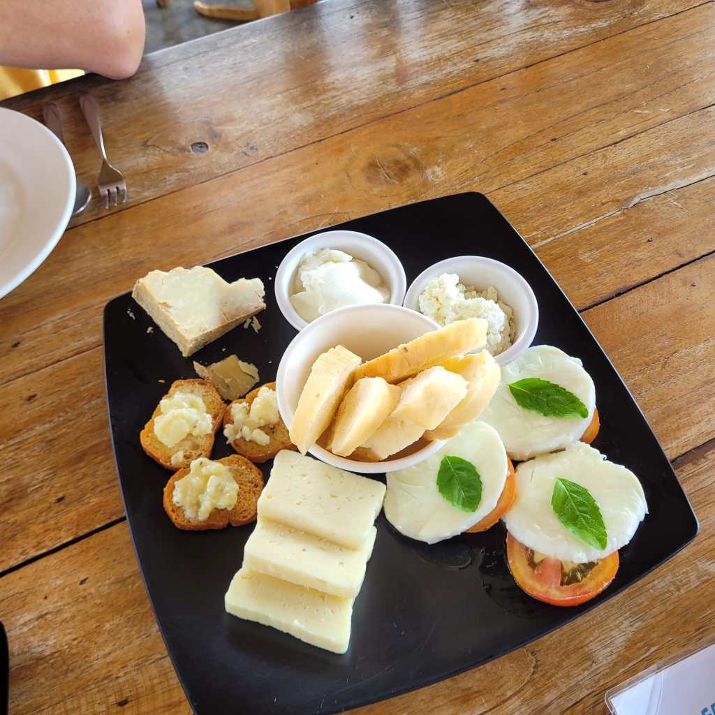We saw the place where they keep goats, and where the buffaloes get milked and showered etc. But it was not open, so we went to the café instead. At the café we ordered buffalo ice cream and a buffalo cheese platter. The noticeable difference was that all the products were twice as rich because of twice the fat. The ice cream was nice, and the cheese platter was amazing. We have not seen much cheese while travelling.
