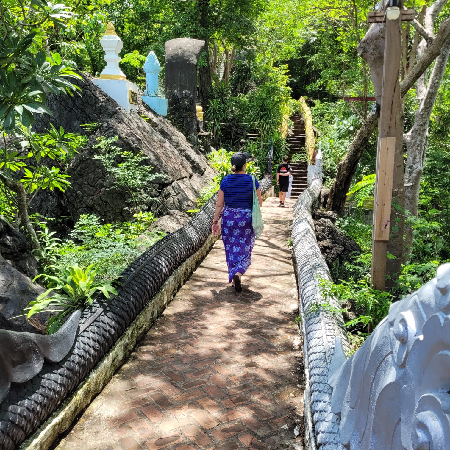 On the way up, we were able to enjoy the temple at the bottom, with its many Buddha statues. You can see in the photo above the Naga’s or serpents bodies extending up on either side of the steps.