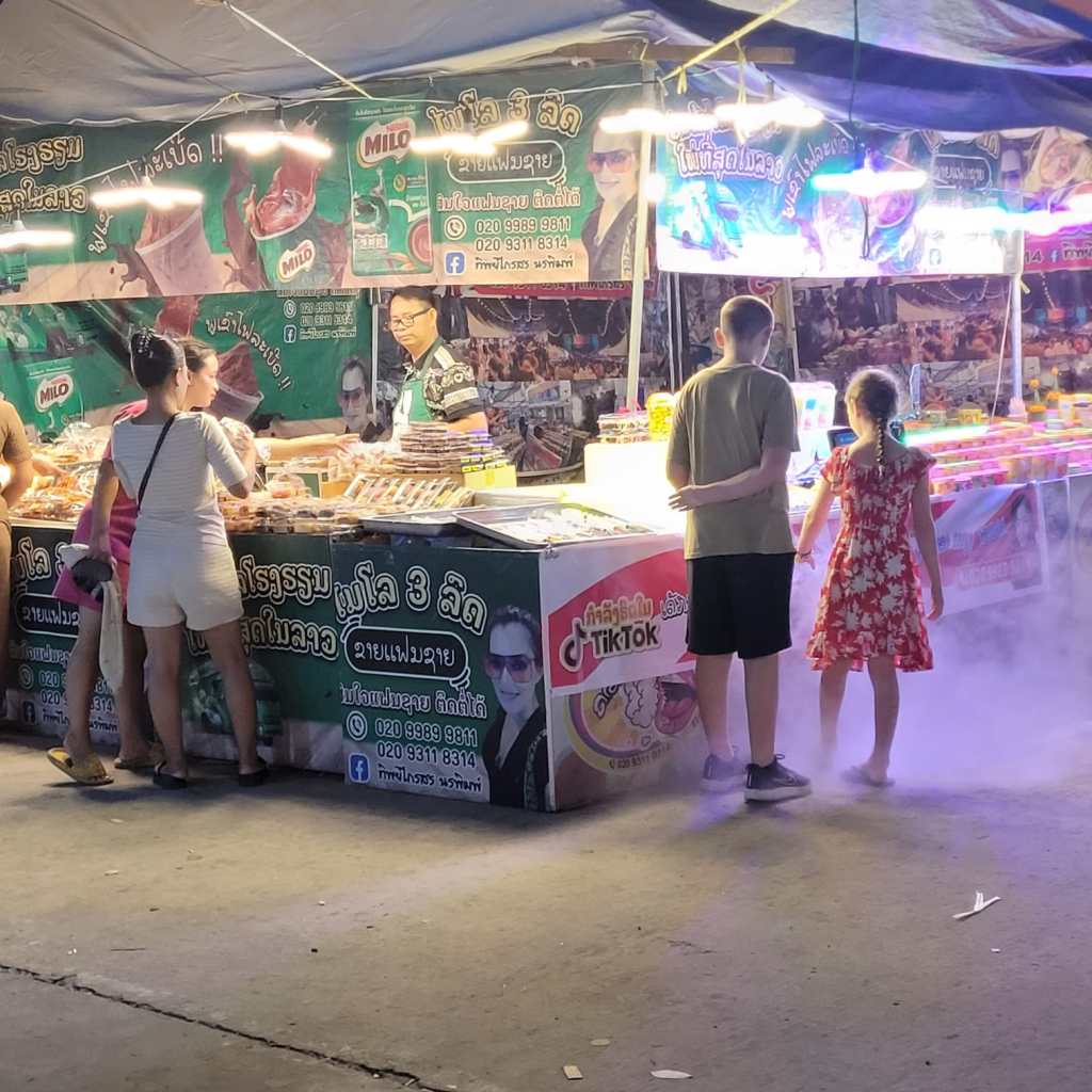Shaun and I regularly shake our heads at the lack of health and safety that we witness throughout SEA. We’ve seen some incredibly risky practices around the place, and the carnival was no exception. There were huge multi power point units exposed to the elements with cords strewn all over the pedestrian areas. The rides were rickety and didn’t look like they were serviced very regularly. None of the rides were fenced off either. At one stage, Shaun came within inches of being clocked by a moving ferris wheel cage! Saying that, the kids had a wonderful time, so it was a worthwhile visit.