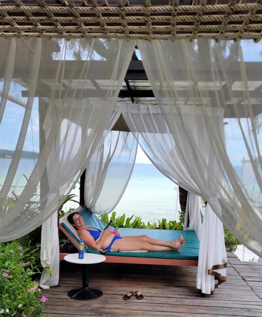 Our rooms were gorgeous, and we had interconnecting bungalows that were beautifully decorated with gorgeous bathrooms. This was our treat accomodation in Cambodia and worth every cent, although it was still considerably cheaper than any other beach resort we have stayed in.
