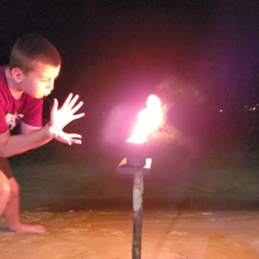 While we enjoyed some peace and quiet, Anna and Leo had fun photographing the flaming torches to create magical effects.