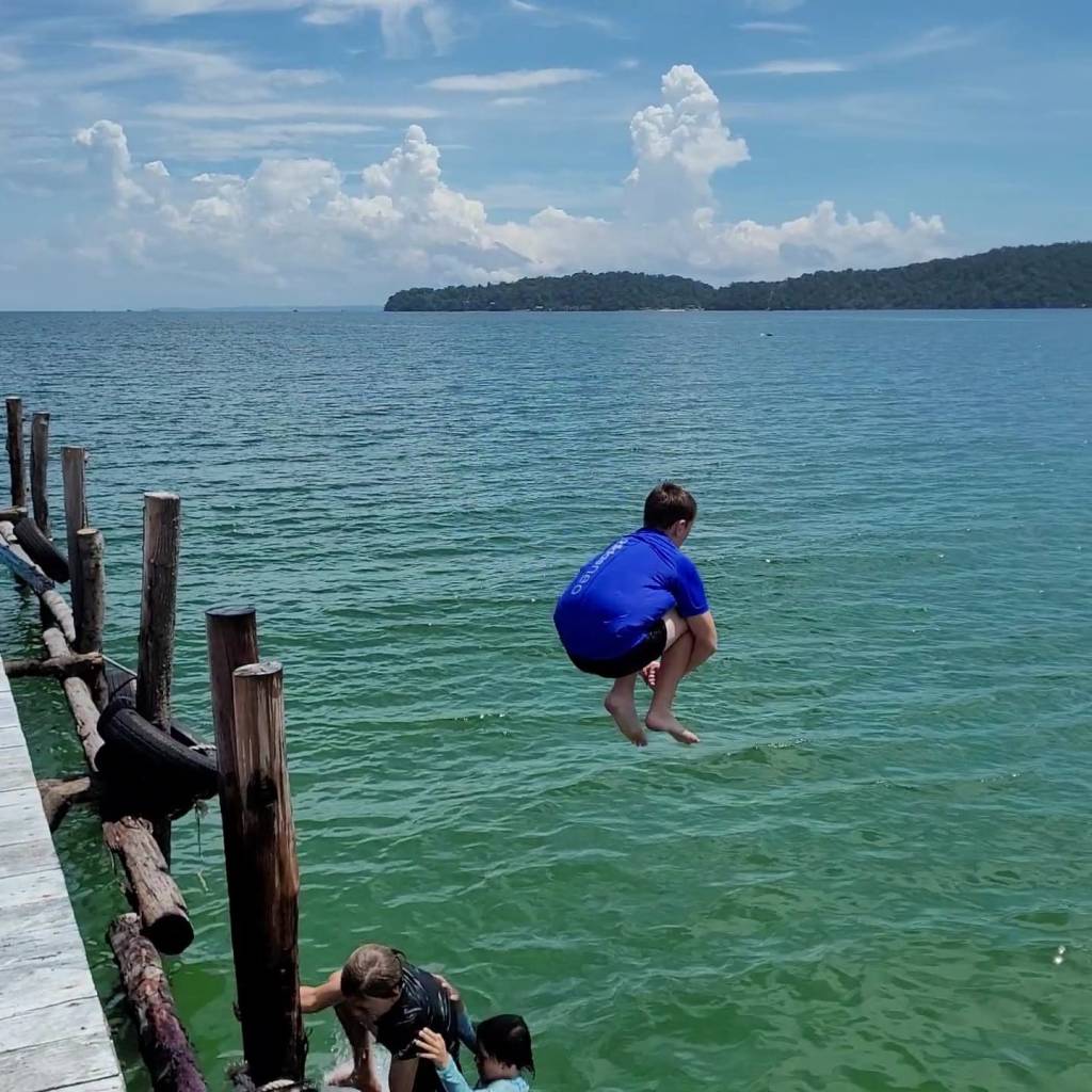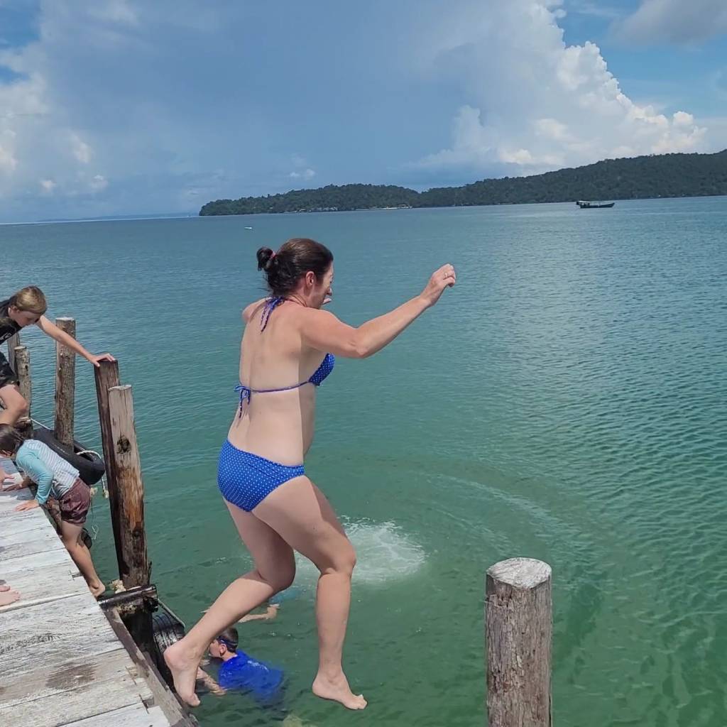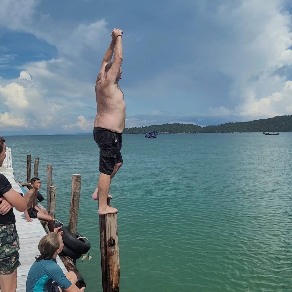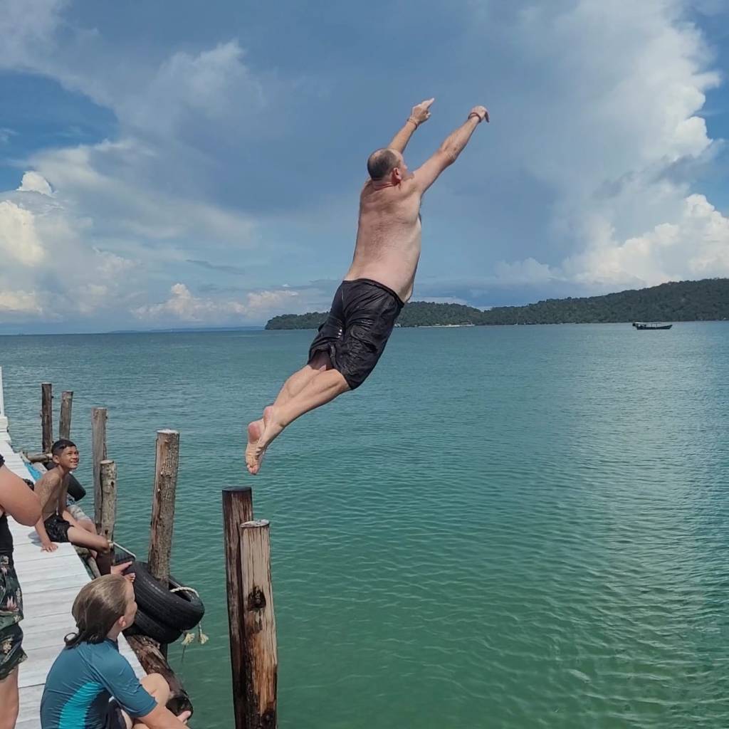 They were adventurous kids, and since jumping in the pool wasn’t really allowed, they went down to the end of the pier to jump off. As soon as Leo and Anna got wind of this, they were keen to join in, so we went to the end of the pier to supervise.