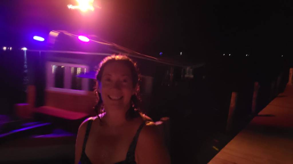 We enjoyed the bioluminescence for around half an hour. The kids were then starting to get cold, so we made our way back to the pier. It had been well worth taking a boat out, away from light pollution on the beach. Saying that, when we arrived back, Leo jumped in the water off the other side of the pier and found that there was plankton there as well, just not quite as bright.