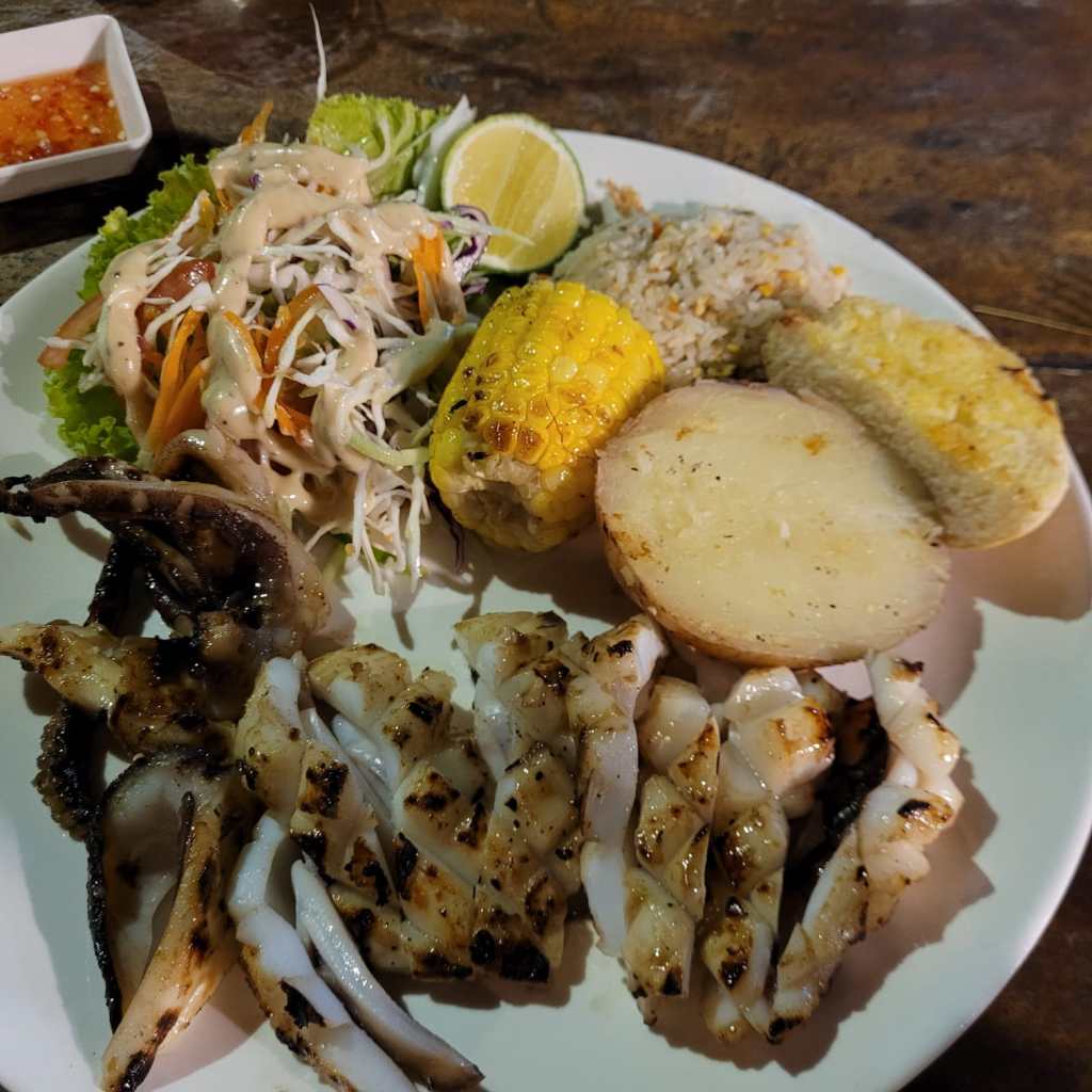 We had investigated the options on previous nights, and found a place towards the other end of the beach that did an amazing seafood BBQ for US$7 per person.