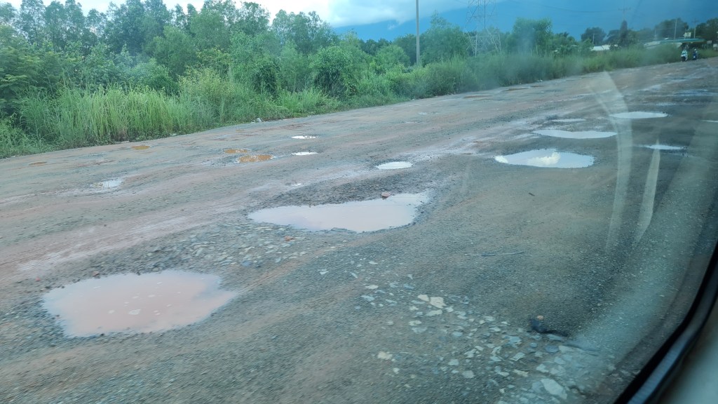 The first few kilometres heading out of town were fine, on sealed roads in decent condition, but once we reached the outskirts of the city, the road became an unsealed track. It was terrible to travel on!