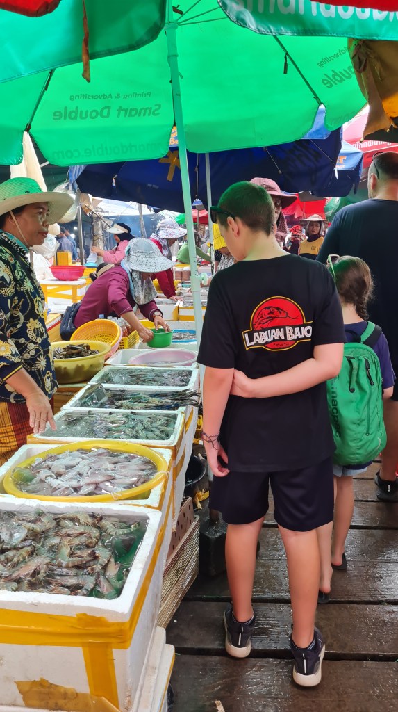 We wandered through aisles of fresh shellfish, including all shapes and sizes of prawns, lobster, snails, and most of all, crabs.