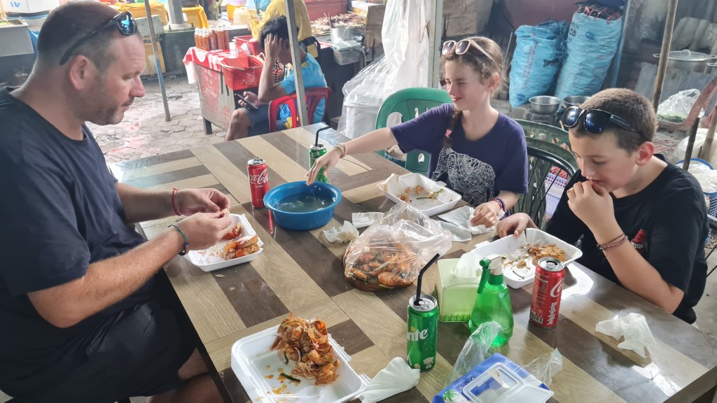 When in Kep, crab should definitely be on the menu, so we bought a kilo of crabs and a kilo of prawns, which a lady then cooked up for us there and then for a few extra dollars.