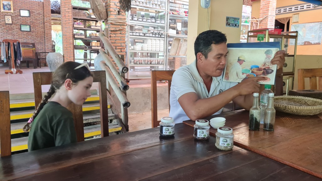 When we reached Sothys’s Pepper Farm, we were greeted by our lovely tour guide who sat us down with tea while he taught us about the different types of pepper they produce.