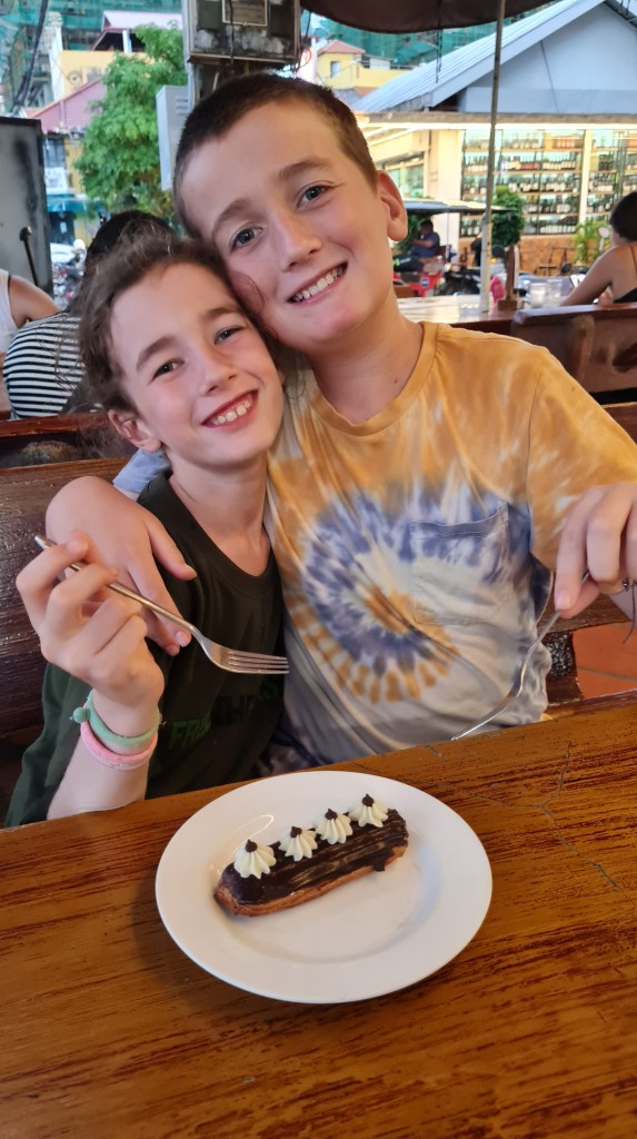 We have certainly found many amazing bakeries in Cambodia. Over and above some remarkable architecture found in Laos and Cambodia the French have also very much influenced this side of local cuisine. We’ve enjoyed beautiful fresh baguettes, croissants, crépes, and cakes on our travels. This chocolate eclair and lemon meringue pie were both outstanding.