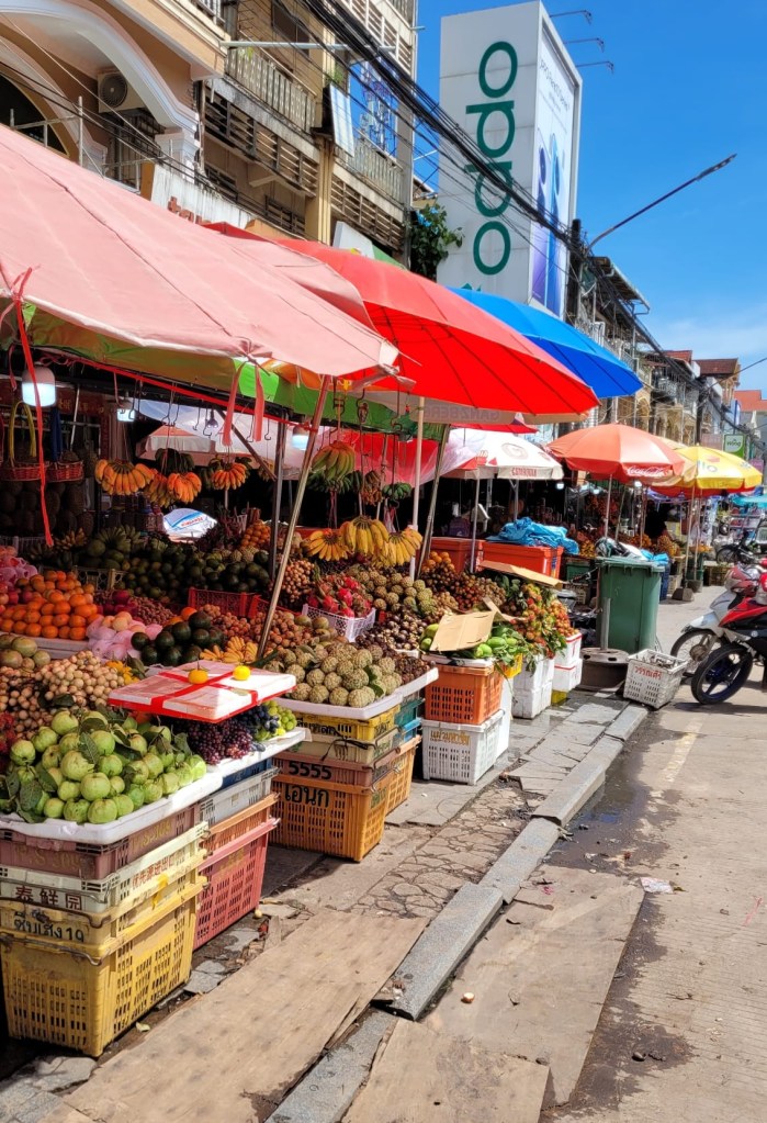 We had no trouble using the extra time in Kep, making another trip to Kampot to visit the market and look around. This time, we got a driver with a car, which was much more pleasant and a lot quicker than our dusty tuktuk adventure a couple of days earlier.