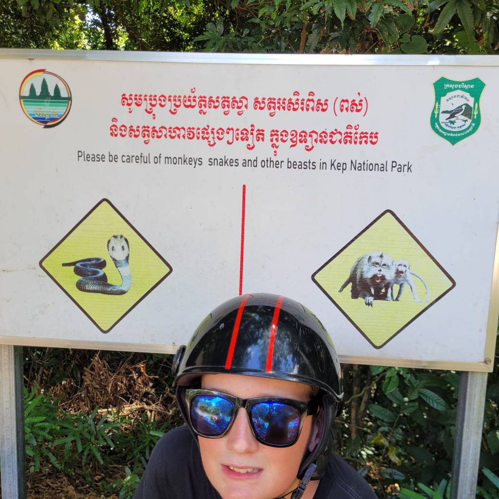 The sign above warned us about the dangerous beasts in Kep National Park, so we were on the lookout, but we didn’t see any monkeys or snakes at all.
