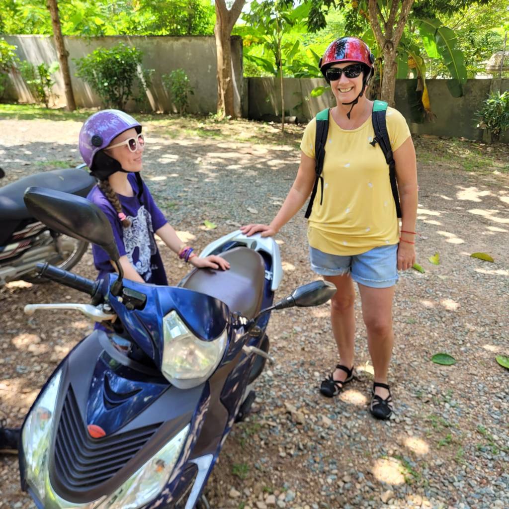 The Butterfly Garden had been recommended by our host as a nice place for the kids, and he was right. Travelling up the road to reach it was a bit of an adventure, because the last two kilometres were uphill dirt and gravel, with tree roots growing through the middle, as well as lots of ruts and potholes. Anna and I were in front with Google maps leading the way, and when we arrived, we were rather impressed with ourselves handling the road with ease…I don’t think I could’ve even imagined riding a scooter on a road like that five months earlier!