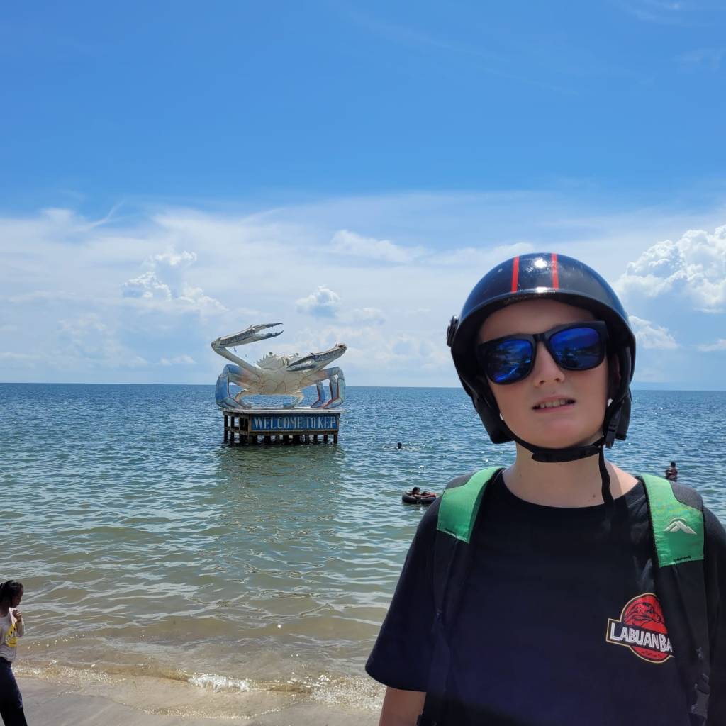 Kep is famous for its Crab Market, so that was next on the list to check out. After passing through Kep Beach on the way and getting a photo of the iconic Kep crab, we found a place to park our scooters and then walked up the road to the market entrance. The area was teeming with people due to it being the main holiday weekend for Pchum Ben, the Cambodian Festival of the Dead. Families travel from miles away to meet for beachside picnics and family get-togethers. Even though the traffic was a bit crazy it was such a nice festive atmosphere.
