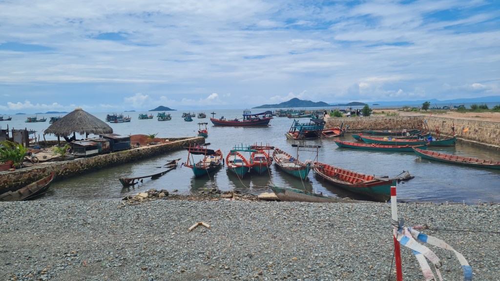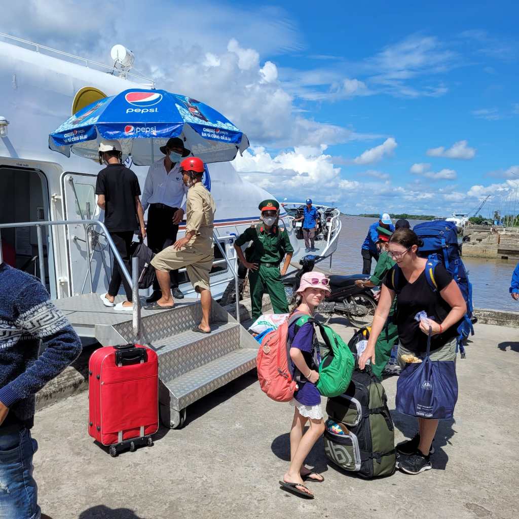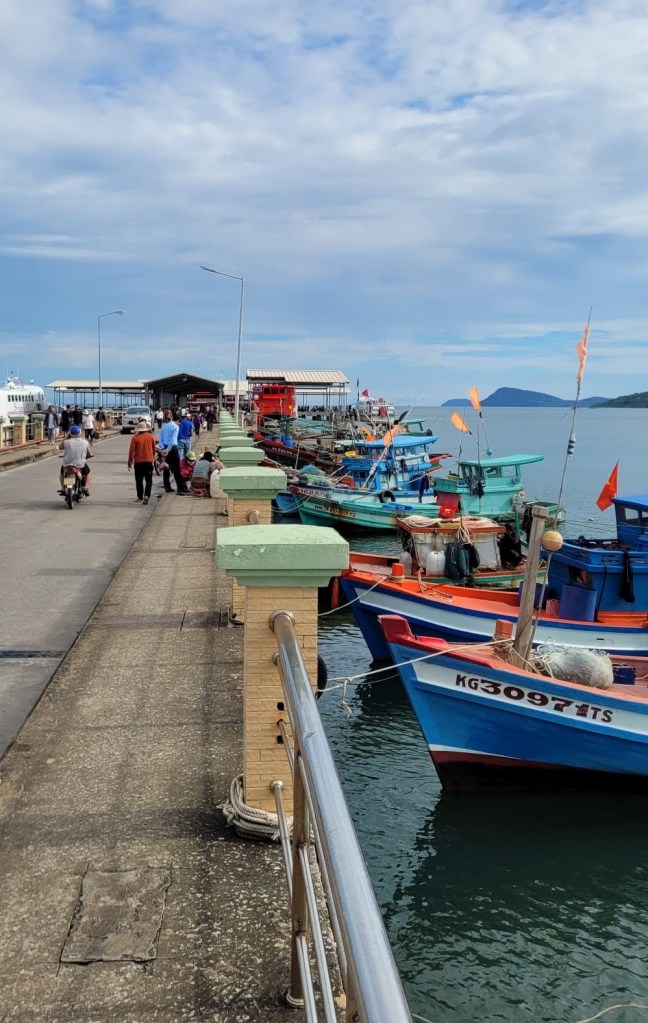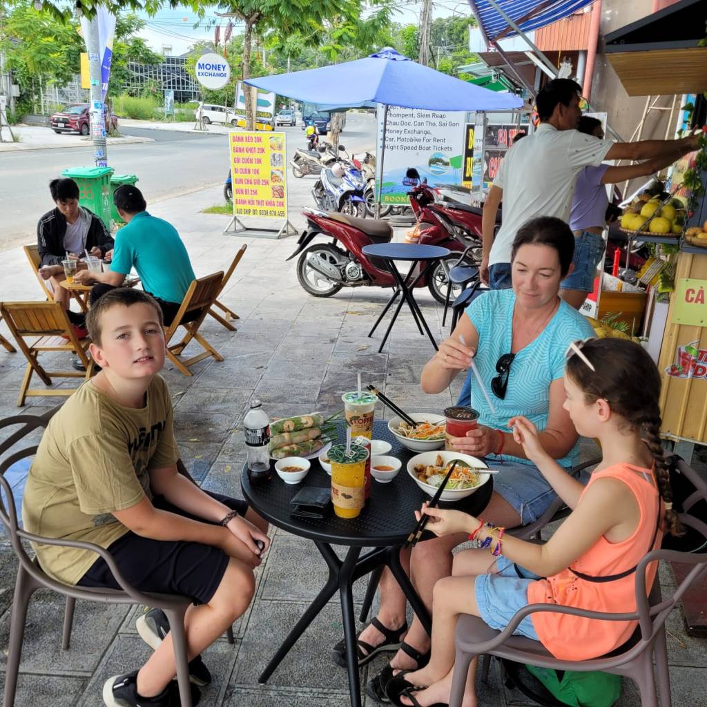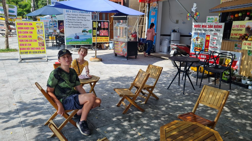 After what seemed like an age for the first step of processing our entry, we had to go to the next window for a health slip and to have our temperature taken. At this point, the official then said it would be US$1. Shaun handed over a $1 note and then quickly walked away before the official could ask for $1 per person! Clear of immigration, we walked into Vietnam and met our friendly van driver who took us to the Ha Tien harbour, where we would catch the ferry to Phú Quôc. The van was incredibly modern and comfortable, and we arrived within 20 minutes, leaving us time to devour a fresh banh mi before boarding the ferry. Everything about Vietnam seemed a little bit shiny and new compared with Cambodia, which makes sense with Vietnam being 20 years ahead with their war recovery.