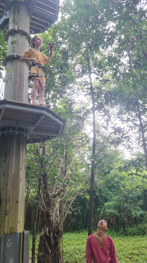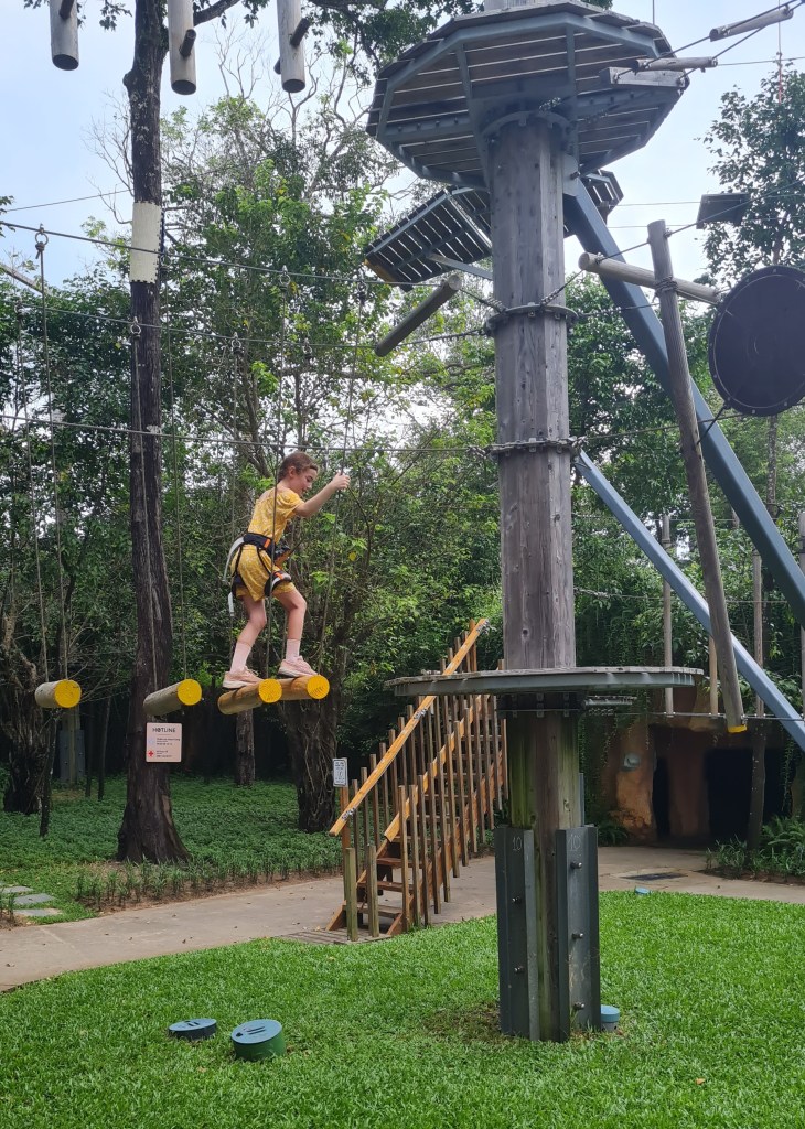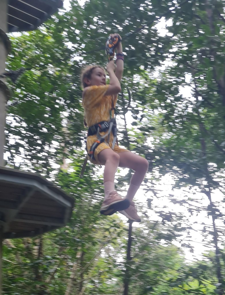 The High Ropes were really really fun but also scary. Heights can be a bit scary, and when I was on the zipline, butterflies were swirling around in my tummy, but when I did it, I felt really happy because I overcame my fear.