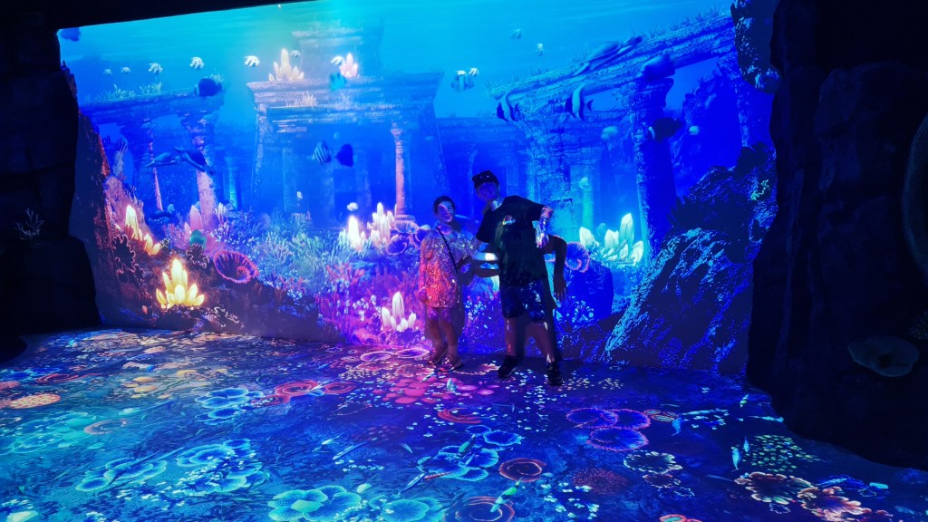 It was a kid’s area… the only cool thing was there were sandpits with stuff projected on them, so I got to make a mountain. But my hands got all sandy.